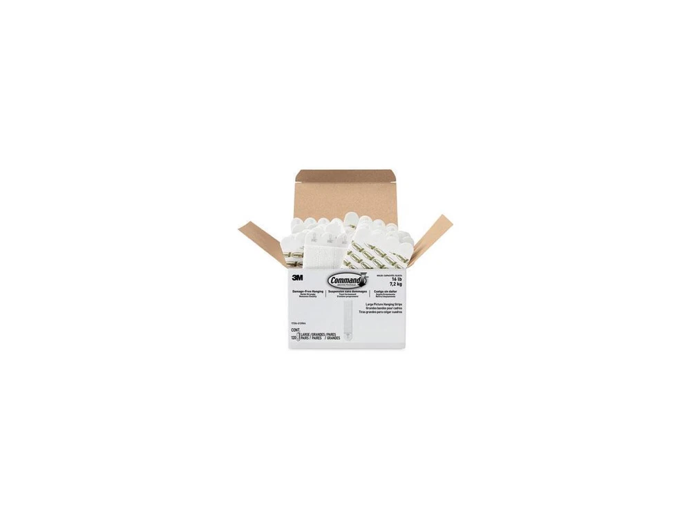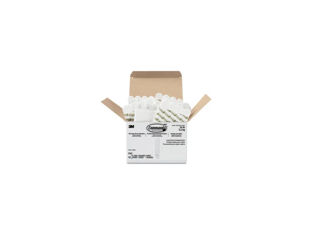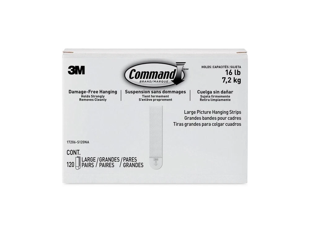 Decorate how you want, when you want without damaging your walls. Command Picture Hanging Strips let you fearlessly hang pictures without nails or tools. - INCLUDES- 120 Pairs of Large, White Command Picture Hanging Strips (240 Strips total); 4 Pairs hold 16 lbs. Maximum frame size of 24 inches x 36 inches. - DAMAGE-FREE DECORATING- Say goodbye to holes, marks, or sticky residue on your walls; Command Picture Hanging Strips by 3M are easy to use and help keep your walls looking beautiful. - NO TOOLS REQUIRED- Hang picture frames, wall art, mirrors, wall clocks, signs, dry erase boards, holiday decorations, acoustic foam boards, and other home decor where you want without nails or a hammer. - STRONG AND VERSATILE-Command Strips hold strongly on a variety of indoor surfaces including painted walls, finished wood (painted or varnished shiplap, cabinets, or doors), painted concrete cinder block, laminate, glass, tile, metal, other smooth surfaces. - REMOVES CLEANLY- Redecorate when inspiration strikes. These picture hangers leave no sticky adhesive behind. Perfect for your dorm, apartment, home, and office. Not just for picture frames, these wall hangers are also great for creating a gallery wall, hanging college dorm decor, wooden letters, nursery décor, acoustic foam boards, and more. These picture frame hangers click together to lock in place and keep your pictures level. When you're ready to redecorate your space, the Command Strips remove cleanly and damage free. - Sold as 120/Box. General Brand Command Type Type HooksHangersAnchor Sets Shipping Enjoy fast and reliable shipping when you buy your products from Newegg. Our ordering and shipping services are among the best in the industry due to short processing times and a variety of shipping methods. Your orders are packaged at one of the many local warehouses across the country, minimizing delivery times and ensuring you get your purchases as soon as possible. Payments Newegg has partnered with PayPal to offer you the very best in payment services. PayPal allows you to buy with confidence, knowing your payments are processed quickly and securely with state-of-the-art encryption technology. Return Returns are subject to restocking fees of 15% - 30% of the purchase price and return shipping fees. For products that are eligible for return for replacement, the return shipping labels are free for returns for replacement of the same item within the applicable return policy period. Newegg does NOT charge for restocking fees or return shipping labels for returns of defective products, or if you received the wrong product, the product did not match what was shown on the Site, or we made some other shipping error, provided the item is returned within its return policy period, and in accordance with the Return Policy. For international buyers, items shipped internationally do not qualify for manufacturer warranties.