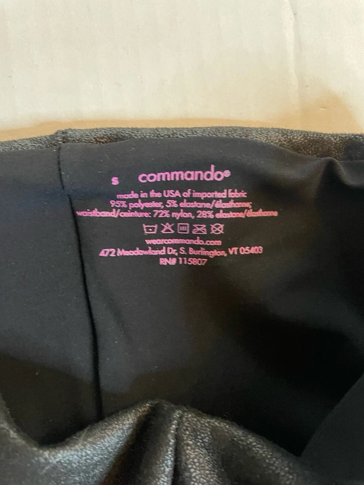 Commando Women's Black Studio Legging Pants in size S. These jogger-style leggings are made of polyester with slimming, compression, and stretch features. The brand is known for high-quality activewear.