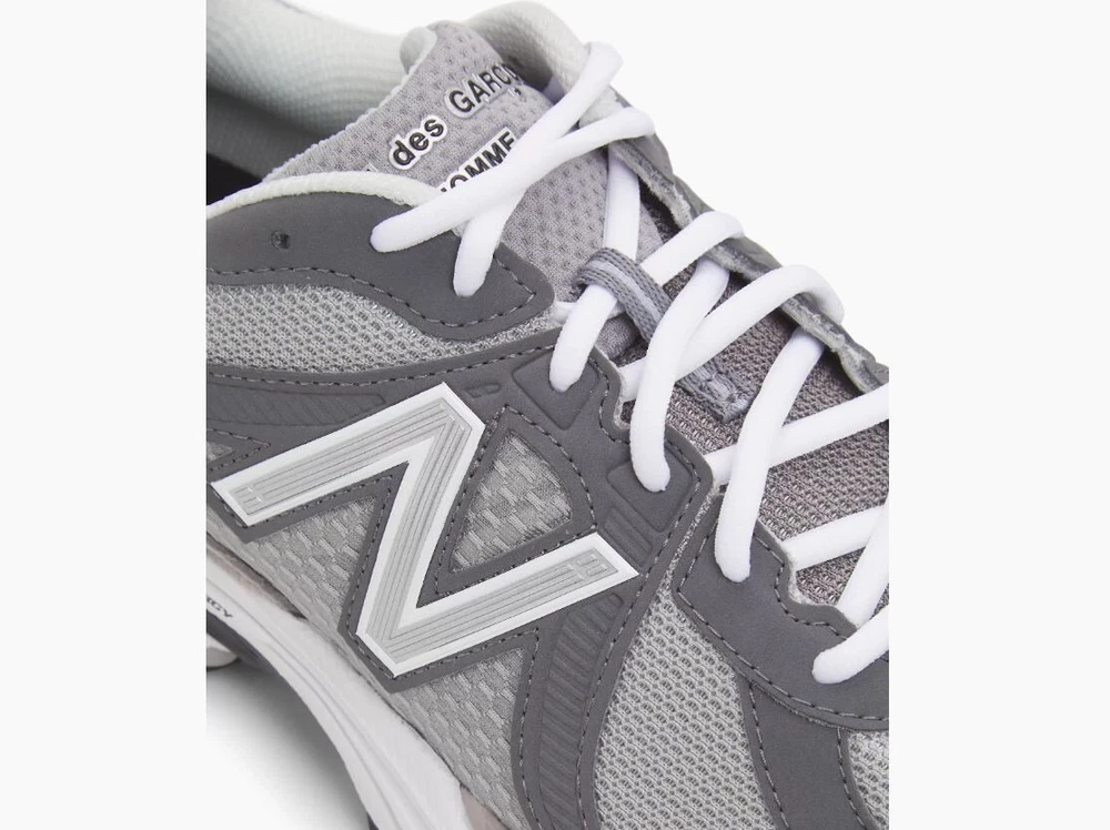 Elevate your sneaker game with these Comme des Garcons x New Balance MR860 Leather Sneakers in Gray. Crafted with high-quality leather, these sneakers are perfect for any athletic occasion. The unique design features the iconic Comme des Garcons logo and the New Balance X product line. These sneakers are perfect for men who want to make a statement with their footwear. The gray color is versatile and can be paired with any outfit. Ideal for athletic activities or casual wear, these New Balance 860 sneakers are a must-have for any sneaker enthusiast.