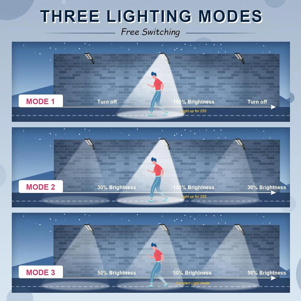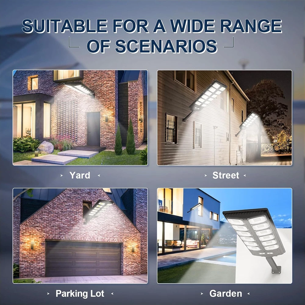 Ultra-Bright Solar Motion Lights Outdoor The solar lights outdoor are equipped with super brighter LED beads; the super output power exceeds other solar lights, the brightness of this light reaches 100LM/W; the solar lights are equipped with high capacaity battery, the working life is more than 50000+ hours, it takes 6-10 hours to charge during the day; at night, 6-12 hours working time in induction mode, 6 hours working time in constant light mode, make your way home safe. 3 Modes Work Lighting Outdoor Solar Lights have 3 working modes: Mode 1: Solar powered outdoor lights remain off until motion is detected, the solar lights will turn on to 100% brightness and turn off again after 20 seconds; Mode 2: Solar outdoor lights remain on at 30% brightness until motion is detected, the solar lights will change to 100% brightness, and return to 30% brightness again after 20 seconds; Mode 3: The solar motion sensor lights is always on, 50% brightness lighting; Easy to Install no need to install any troublesome wires and accessories, just screw the base to the wall of any material, and then install the solar light; perfect solar outdoor lighting lamp for yard light, garage light, garden light, parking lot light, exit light, entrance light, driveway light, patio light, entryway light, etc. Shipping About us Payment Ruturns Contact us Shipping Please read for your own benefit and understanding on our shipping items. All the items will be dispatched to you within 2 business day. The pacakge you can tracking on the USPS, Fedex, UPS, or DHL. Purchase price do not cover any applicable tax or duty that might be charged by customs ,buyers are responsible for such charges. If you have not received your package as our declaring in description please contact me before you want to leave feedback we can refund money or resend item as your choice. For the vast majority of orders, we will ship within 24 hours of your payment. Please be patient and we'll timely update order status for you. Each product has shown our hearts to you, and we believe that our products will not disappoint you for your patience. About us Welcome to our eBay store. As a leading and emerging company in manufacturer and exporting business, we are specialized in Business and Industrial Products, Sporting Goods, Pet Products, Home and Garden products for more than 10 years. We believe that it is our vision and mission to provide innovative products with best service and competitive price to satisfy you. Our goal is to make sure that you can find exactly what you are looking for and make it easy for you to place your orders. Payment Payment should be completed within 4 (Four) days of auction closing. Or unpaid dispute will be filed for closing auction. We will leave a positive feedback immediately after payment is received. We appreciate a positive feedback as much as you do. If for some reason there is any issue with the purchase, please contact us prior to leaving feedback, we will be glad to work together and provide a satisfying solution. Ruturns All of our items are backed with a 30-day return policy. We ensure all our items are new and in excellent condition prior to shipping. In case you receive the item that is not to the standards above, please contact us via e-Bay messages. All returns must be in new original condition as received and should be shipped with delivery confirmation Please note that all returns must be pre-approved by us. Unauthorized returns will not be accepted. If you need to return, please check twice to confirm the item not work and contact our customer service representative, let us know the detailed problem and send us some pictures for confirmation. We ONLY accept returns with original package. Please make sure that item has NO man-made sabotage. Used items will not be accepted for return. Contact us We will reply message or E-mail in 7-10 hours Our working time : M onday - Sunday 9:00am-22:30pm ( GMT+08:00 Beijing ) 1:00am-14:30pm ( GMT+00:00 London ) 19:00pm-08:30pm ( GMT+06:00 USA / Canada )