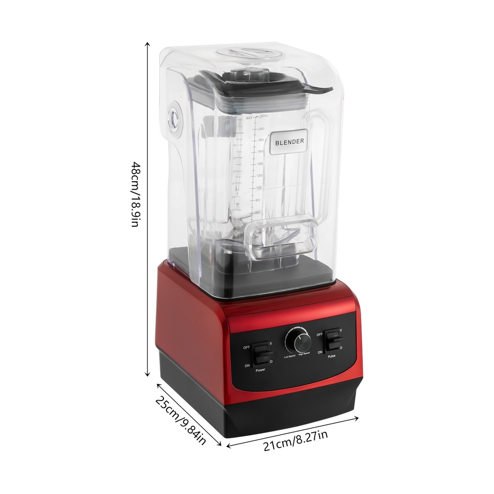 Specification Color: Black Shape: Square Style: Modern Material: ABS, PC, 420 Stainless Steel, Acrylic Process: Spraying Mounting Type: Tabletop Plug Type: US Standard Power Source: Corded Electric Voltage: 110V Capacity: 2.2L/74.4oz Product Size: 21*25*48cm/8.27*9.84*18.9in Package Size: 55*32.5*29.5cm/21.65*12.8*11.61in Gross Weight: 6.8kg/15lbs Net Weight: 6.2kg/13.67lbs Each Package Included 1*Smoothie Machine 1*Container 1*Food Pusher 1*English Manual 2.2l Smoothie Machine Commercial Shake Blender Kitchen Slushy Frozen Drink Maker Description This smoothie machine with strong blades and a powerful motor can crush ice efficiently. With a soundproof cover design, this machine can work with low noise and without splatter, providing you with a comfortable and safe environment during your blending. Its large capacity and adjustable speed can meet the needs of homes, shops, bars, parties, hotels, etc. Key Features Made to Last: The product consists of 420 stainless steel blades, an ABS base, an acrylic cover, and a PC container, which is hard, impact-resistant, and abrasion-resistant, ensuring a long service life. Strong Power: The high-power motor, stainless steel blades, and high load speed provide you with the power to make smoothies easily, so you can make cool, smooth, and great-tasting drinks and smoothies in seconds. Large Capacity: The 74.4oz capacity can handle more ingredients at one time, improve work efficiency, meet the needs of more customers, and reduce the waiting time. Noise Reduction: The thickened soundproof safety cover can greatly reduce noise, ensuring safety and giving you a quiet business environment. Thoughtful Design: Two scale units (ml, oz) on the body of the container are available for your reference to suit your liquid measuring habits. Space-saving: With its 8.27*9.84-inch base and vertical design, you can place it on any countertop without taking up too much space. Easy to Operate: The power and pulse switches make it easy to start the machine and you can turn the knob to adjust the speed for different needs. Effortless Cleaning: The simple product construction, detachable lid, and removable container make it easy to clean the product with a damp rag and water. Ideal Gift: With its modern appearance, high practicability, and wide applications, this product is a great gift to your mother, father, friends, etc. on housewarming and other holidays. Two Colors Available: You can choose from the two colors: black and red, according to you preference. Details Practical Handle: It allows you to easily pick up the container, facilitating your access and handling. Food Pusher: It can help you adjust your food and keep you away from injuries caused by accidentally touching the blade. Clear Design: The clear housing allows you to visualize the making process of the drink. Enjoy your smoothie-making now! Fixing Disc: It is wear-resistant, heat-resistant, and durable for commercial and high-intensity use while fixing the container stably for smooth operation. Application It is suitable for restaurants, hotels, snack shops, milk tea shops, coffee shops, dessert shops, homes, catering, etc. to make smoothies of various flavors, juices, milkshakes, smoothie drinks, etc. Specification Color: Black Shape: Square Style: Modern Material: ABS, PC, 420 Stainless Steel, Acrylic Process: Spraying Mounting Type: Tabletop Plug Type: US Standard Power Source: Corded Electric Voltage: 110V Capacity: 2.2L/74.4oz Product Size: 21*25*48cm/8.27*9.84*18.9in Package Size: 55*32.5*29.5cm/21.65*12.8*11.61in Gross Weight: 6.8kg/15lbs Net Weight: 6.2kg/13.67lbs Each Package Included 1*Smoothie Machine 1*Container 1*Food Pusher 1*English Manual Notes Please read the operating manual completely before use. And pay particular attention to the safety instructions included. Please do not put too hard objects into the blender to avoid wearing the blades. Please note that the blade is sharp and please touch it carefully. Please switch off the switch and power supply when moving or cleaning the product. Please allow the slight color difference caused by the shooting light and 1-3cm error due to manual measurement, and make sure you do not mind before ordering. Payment Delivery details Terms of sales About us Contact us Payment We accept ebay payment 。 Fees such as import duties, taxes are not included in the item price or shipping costs. These charges are the buyer's responsibility. Delivery details Shipping: 2-9 working days to: USA Terms of sales We maintain high standards of excellence and strive for hundred percent customer satisfaction. Feedback is very important to us. We hope that you contact us immediately before you give neutral or negative feedback, so that we can address your concerns. It is impossible to address issues if we do not know about them! About us Your satis faction is our ultimate goal. We work hard to earn your trust and future business. Our certified technicians have tested each item before shipping. The unit comes with 1 year limited warranty on all manufacturing defects. a) If you receive a defective item, you may return it or ask for a discount. Please contact us within 14 days after you receive the package. b) What you returned must be intact and in its original packaging as re? u. Customer is responsible for shipping costs of the returned item. c) We will cover the cost of shipping back t with the shipping rate indicated in the registration page. We will send you a new unit or refund the full payment you paid. Thank you. Contact us Business Hour Business Hour: Monday To Friday: 8:30 AM to 5:00 PM (Beijing China time) Due to time zones, our reply to your questions may not be immediately. But within above working time, we will reply your email within 24 hours. If it's non-workdays, please kindly be patient and wait till Monday. Please contact us with ebay message. Please feel free to contact us if you have any questions. Monday To Friday: 8:30 AM to 5:00 PM (Beijing China t