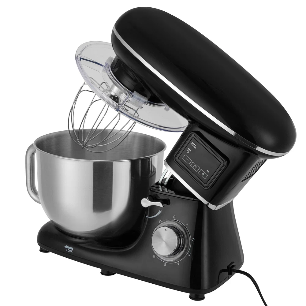 This stand mixer is a powerhouse! The 1350W pure copper motor handles thick dough effortlessly, and the 6-speed control with LCD makes it easy to adjust. Comes with all the attachments you need—dough hook, beater, whisk, and spatula—plus a clear English manual. Perfect for home bakers or small businesses making bread, cakes, or even milkshakes. Sturdy ABS build, modern black design, and US plug make it a reliable kitchen workhorse. Love how quiet and efficient it is!