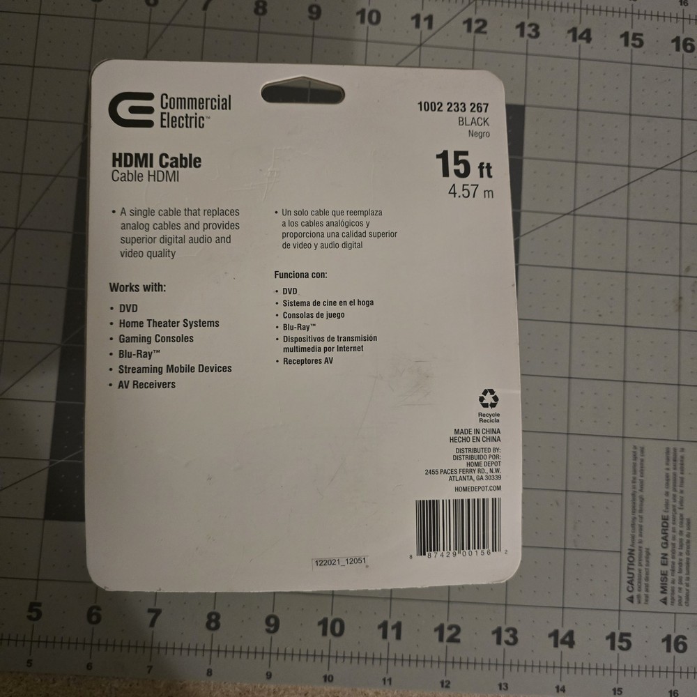 Exactly as pictured! -- Any Questions Feel Free to Ask! Fast Shipping! The Commercial Electric 15 ft. Standard HDMI Cable is a high-quality and reliable option for connecting various devices for video and audio purposes. With a 1:5 connection split/duplication capability, it allows for easily duplicating signals for multiple devices. The HDMI connector ensures compatibility, while the 15 ft cable length offers flexibility in positioning. The brand reputation of Commercial Electric adds a level of trust to this product, making it a valuable choice for enhancing your TV, video, and audio setup. Plus, with free shipping included, it's a convenient and cost-effective option for consumers.
