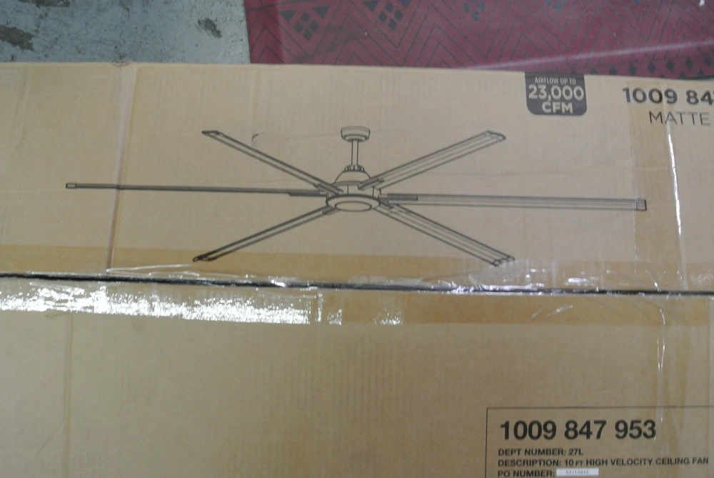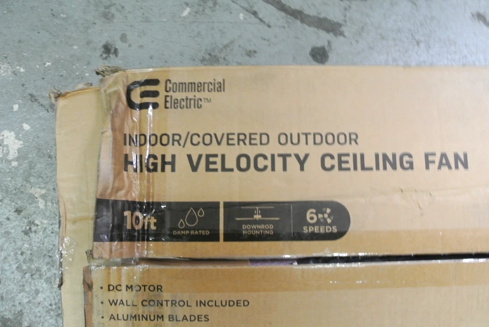 Item available today is the, Commercial Electric High Velocity 10 ft. Indoor/Outdoor Matte Black Ceiling Fan . This is a new ceiling fan . Main box has been opened all items in box are still factory packaged. Never installed. Ready to use. Please see photos for more details. Items in photos are what come with the listing. Thank you for shopping small business. Terms of Sale Listing is for item and/or accessories shown in photos only. Some states may require a tax be charged at the time of checkout, this is eBay automated. We ship and answer questions Mon-Fri 8am-4pm EST . We stand behind our products and would be happy to assist you if you experience an issue. Please contact us first. We ship to your confirmed PayPal address only using UPS or USPS. Items over $200 may require signature upon delivery. There are no returns on items sold for parts. A RESTOCK FEE UP TO 20% MAY BE CHARGED FOR RETURNS THAT ARE NOT OF FAULT OF THE SELLER OR ITEMS NOT RETURNED IN THE SAME CONDITION. Thank you for shopping small business! Shipping Information Only ships within the Continental United States with one business day processing time. LM 06 /30/2025 ( D0 End )