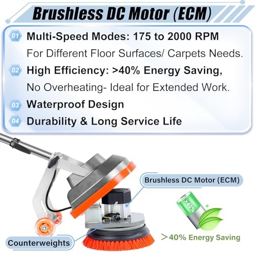 Return Policy Fast Delivery Trusted seller Commercial Floor Scrubber Machine with Brushes and Pads, Heavy Duty Floor Cleaner Buffer and Polisher- Deep Cleaning Tile and Grout, Hardwood Floors and Carpets Without Getting on Hands and Knees Product Description Kit Comes with: 1 Orbital Floor Buffer & Scrubber Machine, 2 Polishing/ Stripping Pads, 3 Scrub Brushes, 1 Microfiber Carpet Bonnet, 1 Pad Holder and 50-Foot Long Cord Commercial Grade Orbital Floor Scrubber & Buffer & Polisher: Great for Deep Cleaning Tile and Grout, Hardwood, Vinyl, Concrete, Shower Pan, Marble, Travertine & More Hard Floors Bring Back the Shine to Hardwood Floors: Simple to scrub, sand, wax, buff and polishe hard wood floors Dry Clean Carpets: Deep cleans carpets without leaving behind soapy or sticky residue that attracts dirt and causes carpets to quickly re-soil Easy to Maneuver and Transport: Easy-to-use fingertip control; it is designed heavy (so it deep cleans better) but rubber wheels make it super easy to carry Brushless DC Motor: Multiple Speed Modes (175 to 2000 RPM) - Choose the best RPM to clean your floors/carpets; 1.5 HP (1100 Watts)- POWERFUL and EFFICIENT motor for extended work Compatible with Oreck Orbiter: these pads and brushes are compatible with Oreck floor scrubber machine; Oreck Orbiter pads and brushes are also compatible with this floor buffer WARRANTY: 5-year manufacturer warranty on motor; 2-year manufacturer warranty on all other components Shipping Returns Payment Shipping Shipping is FREE to all addresses other than APO/PO boxes in the lower 48 states. All our stock ships from US-based warehouses. Shipped via USPS or UPS (depending on location and package weight) Unless stated otherwise, all orders will ship within 24-72 hours of your payment being processed. Check our feedback to see the great reviews of FAST shipping we offer. Returns Seller does not accept returns Payment We currently accept payment via eBay managed payments only. Once payment is cleared, we will dispatch your shipment within 1-3 business days. Please refer to the "Shipping" tab for more information regarding shipping speed to your destination.