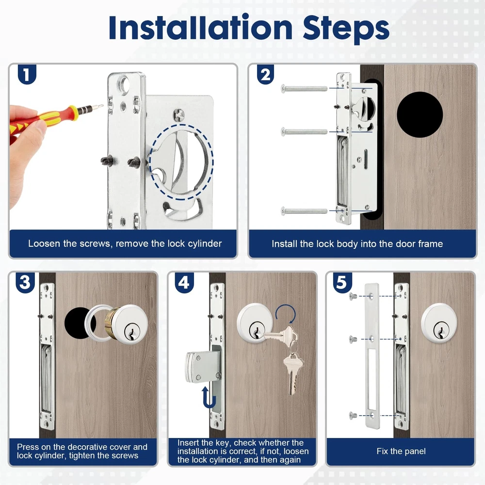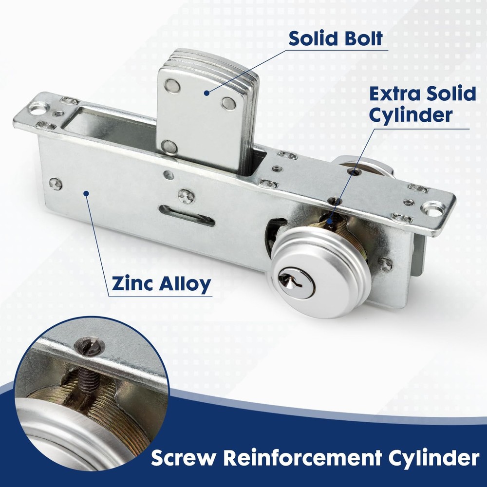 This mortise lock is solid and reliable—thickened aluminum alloy body, heavy-duty zinc alloy core, and reinforced lock tongue make it super secure. The precision screw design ensures a tight fit, while the five-layer steel bolts add extra protection. Perfect for commercial doors, it feels sturdy and well-built. Installation was smooth, and it operates smoothly. Definitely worth it for the quality and peace of mind it brings!