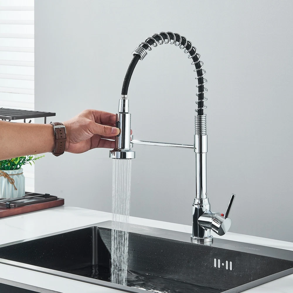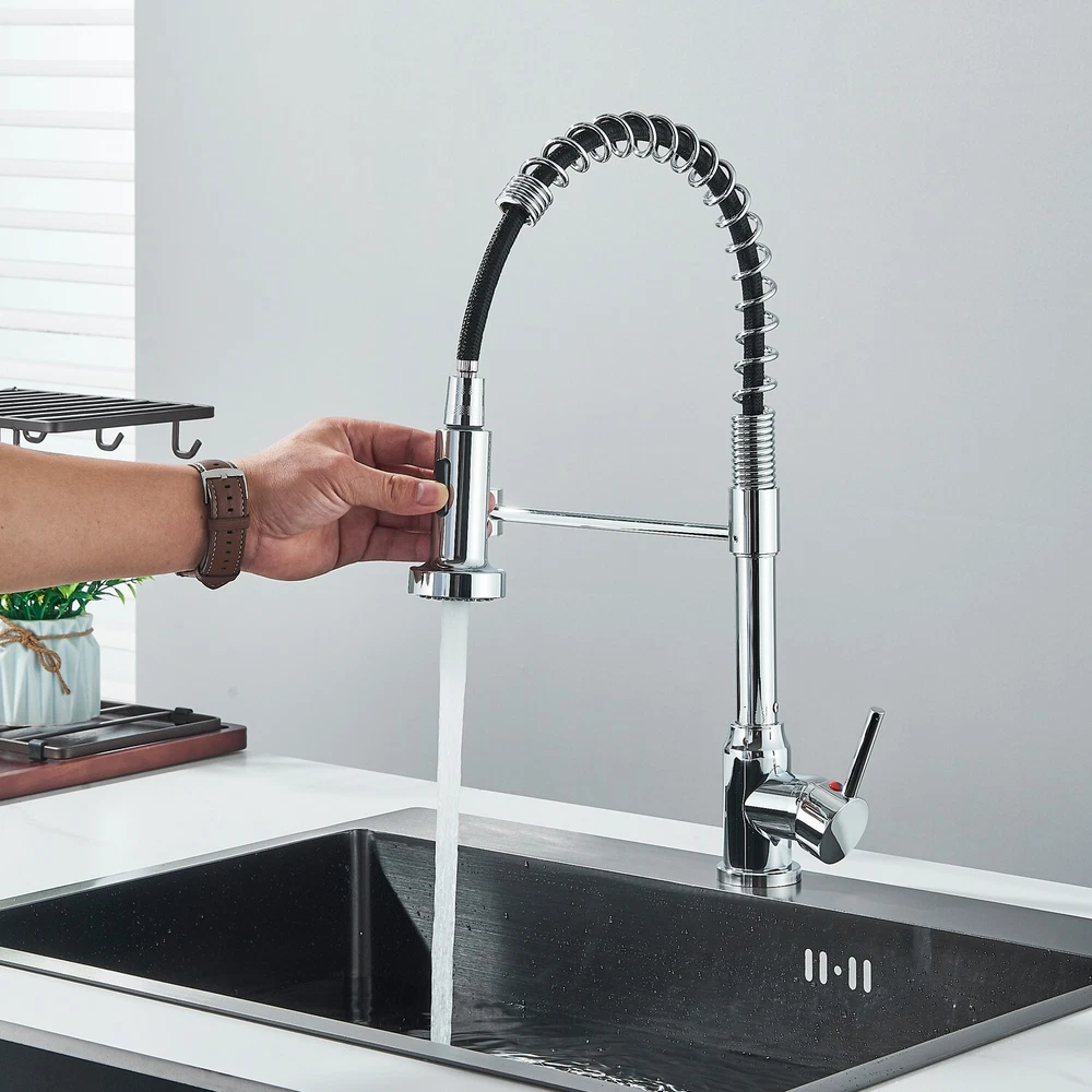 Commercial Kitchen Sink Faucet Spring Pull Down Sprayer Single Handle Mixer Tap