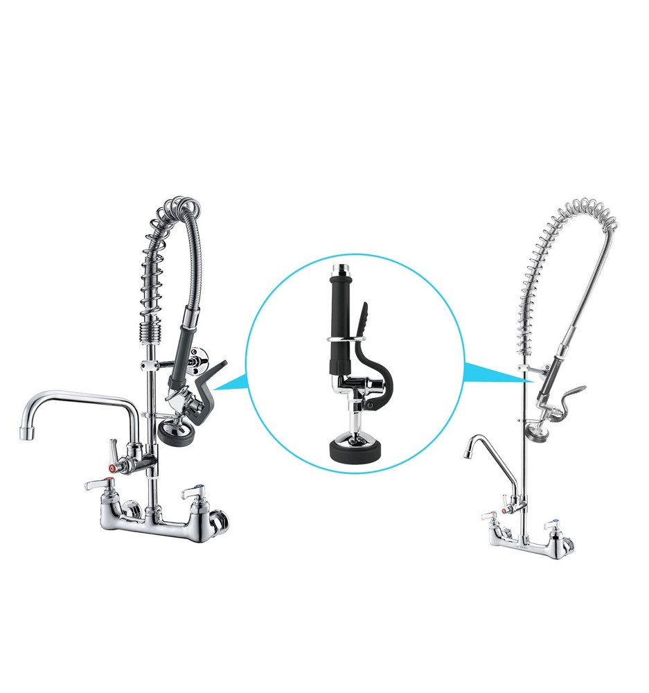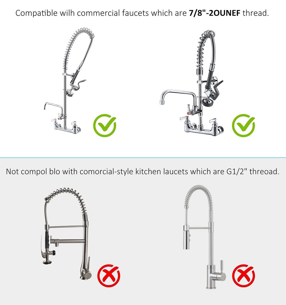Commercial Sink Sprayer 1.42 GPM high pressure pre rinse sprayer with no-slip handle,Commercial Dish Sprayer for commercial sink faucet,polishe chromed(black) 【Commercial Sink Sprayer】commercial sink sprayer with Handle Grip Assembly for commercial sink faucet, widely used for dishwasher, restaurants, hotels, commercial kitchens, or other heavy duty industrial kitchens 【1.42 GPM Spray Valve】Designed for all kinds of pre-rinse commercial faucets in the marketplace, This pre rinse spray valve provides 1.42 GPM high pressure spray when handle is pressed down 【Commercial Dish Sprayer Size】The handle end thread is 7/8"-20UNEF male, if you don't need the handle then the end thread is 3/4"-14UNEF male 【Hold-down Ring】Squeeze the plastic lever handle to divert the water flow from the main spout.Just secure the handle with an o-ring,then this commercial sink sprayer keeps working which can free your hands 【Commercial Sink Sprayer Head】Our commercial sink sprayer features rubber nozzles that prevent hard water and limescale buildup, easy handle and maintenance.Tip:The bottom of the commercial sink sprayer headcan be removed to clean 【Replacement for Commercial Faucet】This pre rinse sprayer is the accessory of commercial fauce.It can also fit for other brand commercial faucet