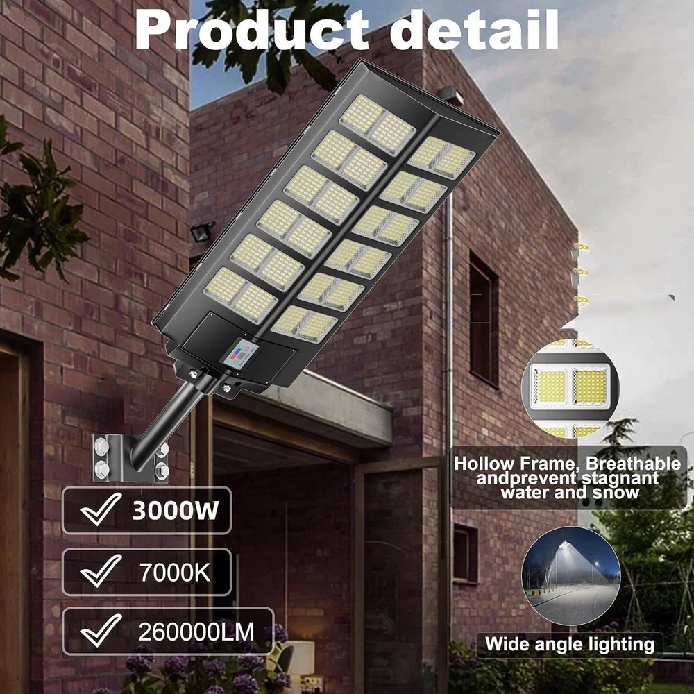 gtin13: Does not apply Number of Settings: 3000W Power Consumption: 3000W Power Source: Solar IP Rating: IP67 Number of Lights: 1 Size: Extra Large Finish: Floodlight Color Temperature: 6500 K+ Ultra Daylight Type: Solar Street wall Light/Floodlight Material: Aluminum Color: Black Theme: Outdoor MPN: Does not apply Brand: Unbranded EC Range: A+++ - G Features: Dusk-to-Dawn, Floating, Motion Activated, Solar Sensor, Timer, Waterproof Light Color: Clear White Control Style: Remote Control Mounting: Hanging, Wall Mounted Style: Modern Lighting Technology: PIR Sensor Type: Motion UPC: Does not apply Energy Star: 1 Star Model: Light Control + Radar Sensing Intelligent Recognit Installation Area: Outdoor