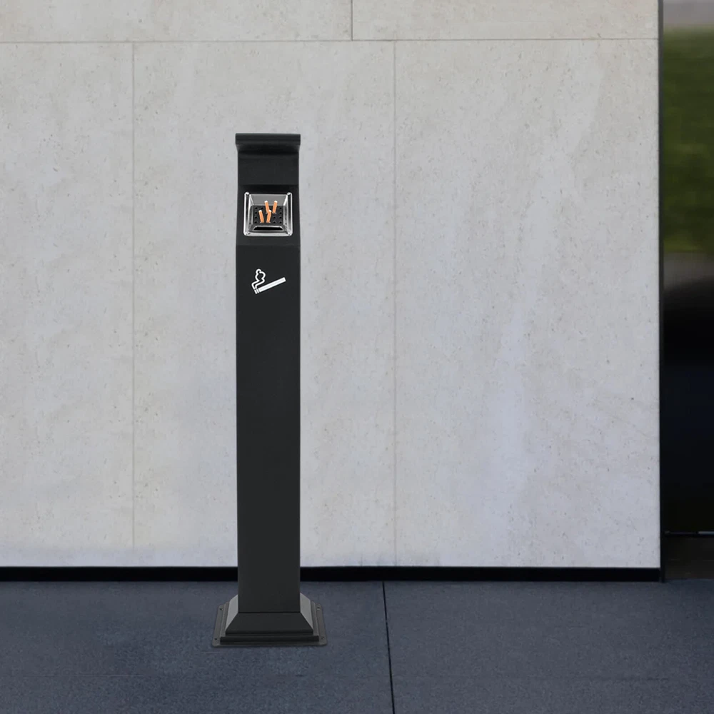 Commercial Trash Can Cigarette Ashtray for Outside/Indoor Waste Comtainer Welcome~ Cigarette Ashtray for Out side, Indoor/Outdoor Waste Comtainer, Com mercial Trash Can Description Made of high-quality galvanized sheet, this cigarette butt container is durable and weatherproof for outdoor use. The wide mouth and ashtray at the top make it easy to extinguish and dispose of cigarette butts. The removable inner barrel is easy to clean and dump. In addition, its elegant and modern appearance is not only a practical choice but also a bright landscape to beautify public spaces. Key Features Build to Last: The high-quality galvanized sheet with the baking paint process gives the product high hardness, and good resistance to corrosion, rust, deformation, and bad weather, keeping it glossy and practical for long-term use even in the outdoors. Thoughtful Design: The 46.45in height is designed for adult height, so you can easily throw cigarette butts into the trash can without bending down. Cigarette Disposal: It features a 3-sided opening design and grid-type smoke suppressors, making it convenient for you to dispose of cigarette butt from different angles, reducing cigarette littering and the likelihood of fires. Thoughtful Design: The rainproof top cover and good sealing can effectively prevent raindrops from entering the interior, allowing the inner barrel to remain dry even in rainy or wet weather, thus keeping the product clean and preventing unpleasant odors. Easy to Clean: The removable barrel allows you to dump the cigarette butt waste inside easily. The smooth surface and simple construction make it easy to clean with water or a damp cloth. Simple Installation: Pre-drilled holes on the bottom and needed accessories allow you to easily secure the product to the floor. Space Saving: The product only occupies a footprint of 10.4*10.4 inches, allowing it to be installed in the corners of parks, shopping malls, hotels, restaurants, and other places. Modern Style: The product comes with a simple shape and elegant black color and has a clean and uncluttered look that makes it easy to integrate into public places such as parks and commercial establishments. Customer Service: We aim to provide quality products and services. If you have any problems, please feel free to contact us. We will reply and solve the problem for you as soon as possible. Details Convenient Handles: The barrel comes with two handles, allowing you to easily lift it for easy installation, trash dumping, or cleaning. Sturdy Door: It has a sturdy lock that prevents non-staff or animals from rummaging around for trash or cigarette butts. There is also a handle that makes it easy to open after unlocking to place the inner barrel. Application The product is suitable for use in homes, hotel lobbies, restaurants, banquet halls, picnic areas, corporations, college campuses, conference venues, tourist attractions, cafes, bars, courtyards, hotels, commercial walkways, and other commercial locations Specifications Color: Black Material: Galvanized Sheet Recommended Uses For Product: Indoor/Outdoor Shape: Rectangular Surface Treatment: Baking Paint Mount Type: Ground Mounted Assembly Required: No Product Overall Size: 26.5*26.5*118cm/10.4*10.4*46.45in Inner Barrel Size: 11*11*38cm/4.3*4.3*14.96in Packaging Size: 120*28*28cm/47.24*11*11in Gross Weight: 6kg/13.23lbs Net Weight: 5.2kg/11.46lbs Package Included 1*Cigarette Butt Container 1*Removable Barrel 1*Key Other Needed Accessories Payment Delivery details Terms of sales About us Contact us Payment We accept ebay payment 。 Fees such as import duties, taxes are not included in the item price or shipping costs. These charges are the buyer's responsibility. Delivery details Shipping: 2-9 working days to: USA Terms of sales We maintain high standards of excellence and strive for hundred percent customer satisfaction. Feedback is very important to us. We hope that you contact us immediately before you give neutral or negative feedback, so that we can address your concerns. It is impossible to address issues if we do not know about them! About us Your satis faction is our ultimate goal. We work hard to earn your trust and future business. Our certified technicians have tested each item before shipping. The unit comes with 1 year limited warranty on all manufacturing defects. a) If you receive a defective item, you may return it or ask for a discount. Please contact us within 14 days after you receive the package. b) What you returned must be intact and in its original packaging as re? u. Customer is responsible for shipping costs of the returned item. c) We will cover the cost of shipping back t with the shipping rate indicated in the registration page. We will send you a new unit or refund the full payment you paid. Thank you. Contact us Business Hour Business Hour: Monday To Friday: 8:30 AM to 5:00 PM (Beijing China time) Due to time zones, our reply to your questions may not be immediately. But within above working time, we will reply your email within 24 hours. If it's non-workdays, please kindly be patient and wait till Monday. Please contact us with ebay message. Please feel free to contact us if you have any questions. Monday To Friday: 8:30 AM to 5:00 PM (Beijing China time) Due to time zones, our reply to your questions may not be immediately. But within above working time, we will reply your email within 24 hours. If it's non-workdays, please kindly be patient and wait till Monday. Please contact us with ebay message. Please feel free to contact us if you have any questions. shipping notice Can not ship to Puerto Rico,Alaska/Hawaii Warranty Three years Type Cigarette Ashtray Brand Unbranded Item Height 118 cm/ 46.5 in Item Length 26.5cm/ 10.4 in Item Width 26.5cm/ 10.4 in Color Black Number of Compartments 1 UPC 756804830663