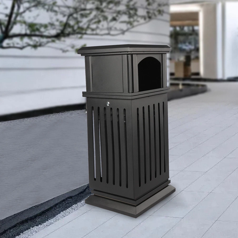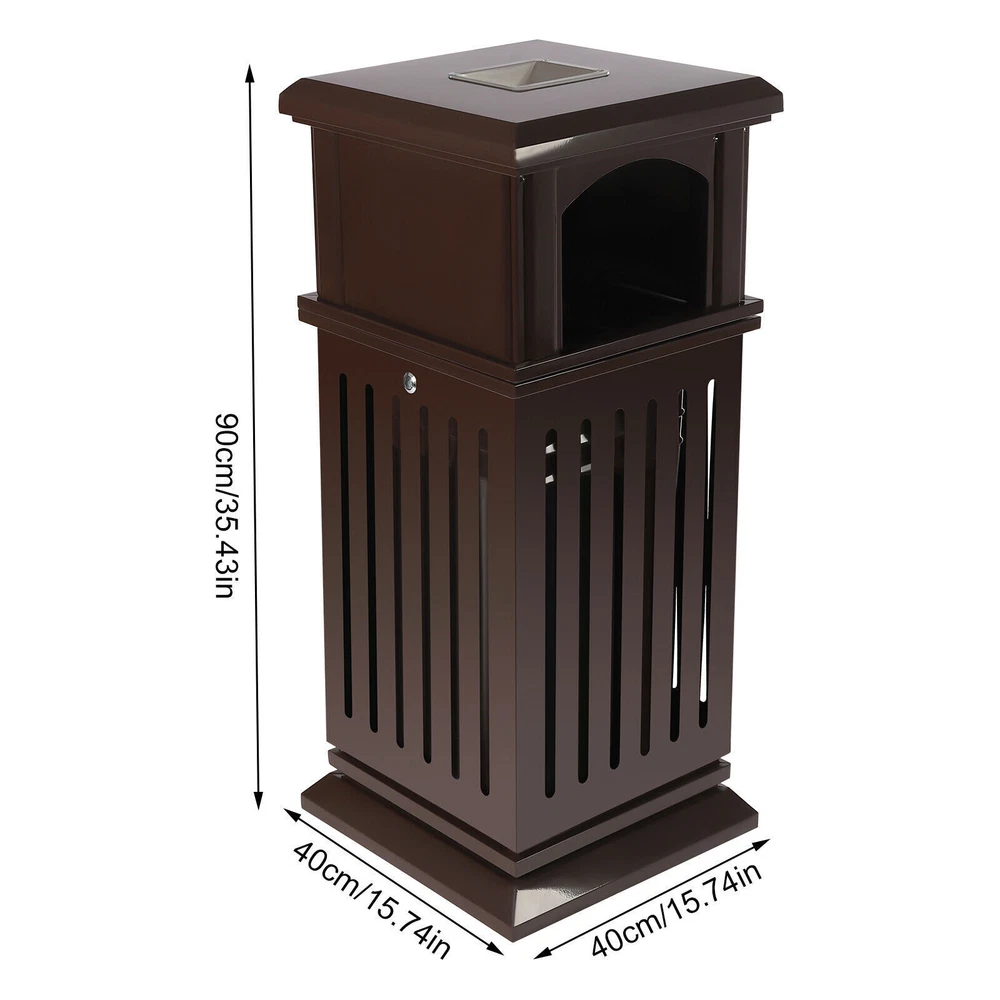 Description An exquisite and practical garbage can not only helps to keep the environment clean and fresh but also beautifies the style of the environment. This garbage can is made of high-quality galvanized sheets and the exquisite spraying and baking paint process can adapt to different indoor and outdoor environments to serve you for a long time. Key Features Exquisite Appearance: The elegant, antique black surface with smooth lines and hollow panels create an exquisite appearance, which can add a classical style to parks and other venues. High-quality Material: The surface of a high-quality galvanized sheet is exquisitely sprayed and baked, which greatly enhances its ability to resist corrosion and impact, enabling it to adapt to different outdoor/indoor environments. Stable Stru Welcome Black Garbage Can Description An Exquisite and Practical Garbage Can Not Only Helps to Keep the Environment Clean and Fresh but Also Beautifies the Style of the Environment. This Garbage Can Is Made of High-quality Galvanized Sheets and the Exquisite Spraying and Baking Paint Process Can Adapt to Different Indoor and Outdoor Environments to Serve You for a Long Time. Key Features Exquisite Appearance : the Elegant, Antique Black Surface with Smooth Lines and Hollow Panels Create an Exquisite Appearance, Which Can Add a Classical Style to Parks and Other Venues. High-quality Material : the Surface of a High-quality Galvanized Sheet Is Exquisitely Sprayed and Baked, Which Greatly Enhances Its Ability to Resist Corrosion and Impact, Enabling It to Adapt to Different Outdoor/Indoor Environments. Stable Structure : Thickened and Enlarged Base and Regular Rectangular Structure Provide a Stable Structure for the Product to Improve Wind Resistance . Hands-free Garbage Disposal : the Double-sided Enlarged Arch Opening Design Not Only Facilitates the Disposal of Larger Garbage but Also Allows You to Dispose of Garbage Without Touching the Lid, Which Is More Convenient and Hygienic. Large Capacity : the Large Deep Liner Has a Large Capacity of 8.8 Gallons, Which Makes It Suitable for High-traffic Areas Such As Parks, Schools, or Amusement Parks. Large-capacity Trash Cans Can Keep the Ground Clean and Trash-free for a Long Time Without Frequent Cleaning. Installation-free : the Product Is Shipped As a Whole so It Can Be Used upon Receipt Without Installation, Which Is a Time Saver. Stable and Secure : the Lid with Lock Enhances Security to Prevent Theft. for Weather Resistance and to Prevent Vandalism, the Bottom of Weather-resistant Trash Garbage Can Be Fastened with Equipped Screws to the Pavement. Thoughtful Design : This Floor-standing Garbage Can Is a Versatile Combination of an Ashtray and Trash Receptacle, Not Only Offers Convenient Hands-free Disposal of Cigarettes and Trash at One Location but Also Can Extinguish and Discard Cigarette Butts for Effective Fire Prevention. Easy to Clean : the Smooth Surface, Simple Structure, and Removable Liner Make It Easy to Clean. You Just Need to Wipe It Gently with a Damp Cloth. Protective Packa ging: the Sturdy Cardboard Box Provides Full Protection for the Product to Avoid Damage in Transit. Customer Service : We Aim to Provide Quality Products and Services. If You Have Any Problems, Please Feel Free to Contact Us. We Will Reply and Solve the Problem for You As Soon As Possible. Details Flip Lid : the Top Flip Lid Not Only Prevents Rain and Snow from Entering but Also Makes It Easy to Clean up the Garbage. Carrying Handles : the Two Carrying Handles of the Inner Liner Not Only Facilitate Movement but Also Prevent Hands from Directly Touching the Garbage. Round Edges : the Round Edges Can Protect Hands from Scratches. Application It Applies to Indoor or Outdoor Places, Such As Patios, Parks, Lobbies, Shopping Malls, Courtyards, Garages, Offices, Halls, Etc. Specification Material: Galvanized Sheet Color: Black Process: Spraying Plastics and Baking Paint Style: Modern Shape: Rectangular, Cylindrical Opening Mechanism: Open-top Special Feature: Entrance, Anti-slip Capacity: 40l/8.8gal Gross Weight: 16kg/35.3lbs Net Weight: 15kg/33lbs Package Size: 92*42*42cm/36.22*16.53*16.53in Product Size: 40*40*90cm/15.8*15.8*35.5in Package Included 1*Garbage Can 1*Key 2*Screws Notes For Safety, Please Completely Extinguish the Cigarette Before Putting It into the Ashtray. Please Allow the Slight Color Difference Caused by the Shooting Light and 1-3cm Error Due to Manual Measurement. Please Make Sure You Do Not Mind Before You Order. Brown Garbage Can Description An Exquisite and Practical Garbage Can Not Only Helps to Keep the Environment Clean and Fresh but Also Beautifies the Style of the Environment. This Garbage Can Is Made of High-quality Galvanized Sheets and the Exquisite Spraying and Baking Paint Process Can Adapt to Different Indoor and Outdoor Environments to Serve You for a Long Time. Key Features Exquisite Appearance : the Elegant, Antique Brown Surface with Smooth Lines and Hollow Panels Create an Exquisite Appearance, Which Can Add a Classical Style to Parks and Other Venues. High-quality Material : the Surface of a High-quality Galvanized Sheet Is Exquisitely Sprayed and Baked, Which Greatly Enhances Its Ability to Resist Corrosion and Impact, Enabling It to Adapt to Different Outdoor/Indoor Environments. Stable Structure : Thickened and Enlarged Base and Regular Rectangular Structure Provide a Stable Structure for the Product to Improve Wind Resistance . Hands-free Garbage Disposal : the Double-sided Enlarged Arch Opening Design Not Only Facilitates the Disposal of Larger Garbage but Also Allows You to Dispose of Garbage Without Touching the Lid, Which Is More Convenient and Hygienic. Large Capacity : the Large Deep Liner Has a Large Capacity of 8.8 Gallons, Which Makes It Suitable for High-traffic Areas Such As Parks, Schools, or Amusement Parks. It Can Keep the Ground Clean and Trash-free for a Long Time Without Frequent Cleaning. Thoughtful Design : This Floor-
