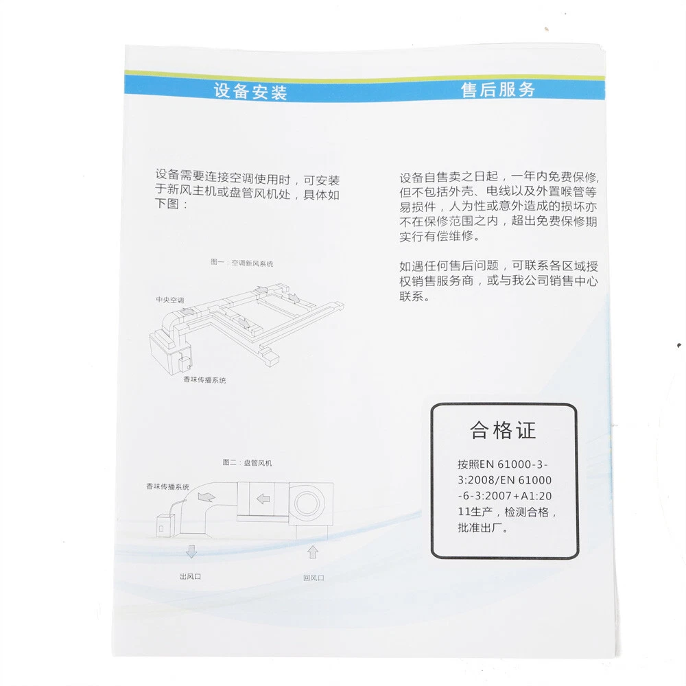 Specifications: Covers: 1,100 sq.ft (100 m²) Power: DC 12V 5W Consumption: 1 ml. per hour Dimensions: 169*86*230 mm(H*W*L) Bottle Capacity: 200 ml. can last 30-40 day Refill: Monthly or depend on your working time Weight: 1.4 KG Color: Modern White Application: Home ,Spa ,Hotel Lobby, Retail Store, Casino, clubs,airport and many commercial place . How To Use Step 1: Add Oil into bottle Step 2: Connect power Step 3: Set up your local time Step 4: Set up work time you want. How To Set Up Time For Machine For each machine, it needs to set up your local time, and then set up working time you want. only when your local time is within working time, machine will work. There are 3- 4 Events on led display,it is composed by 4parts For example: Event 1 on, event 1 Off, Continuous working ti Commercial Essential Oil Diffuser Silent&Waterless HVAC Scent Diffuser Fragrance Machine Scent Diffuser 200ml Scent Diffuser Dc 12v Home Spa bar Products: Specifications: Covers: 1,100 Sq.ft (100 M²) Power: Dc 12v 5w Consumption: 1 Ml. per Hour Dimensions: 169*86*230 Mm(H*W*L) Bottle Capacity: 200 Ml. Can Last 30-40 Day Refill: Monthly or Depend on Your Working Time Weight: 1.4 Kg Color: Modern White Application: Home ,Spa ,Hotel Lobby, Retail Store, Casino, Clubs,Airport and Many Commercial Place . How to Use: Step 1: Add Oil into Bottle Step 2: Connect Power Step 3: Set up Your Local Time Step 4: Set up Work Time You Want. How to Set up Time for Machine For Each Machine, It Needs to Set up Your Local Time, and Then Set up Working Time You Want. Only When Your Local Time Is Within Working Time, Machine Will Work. There Are 3- 4 Events on Led Display,It Is Composed by 4parts for Example: Event 1 on, Event 1 off, Continuous Working Time. Package Includes: 1x Device 1x Power Cord Payment Delivery details Terms of sales About us Contact us Payment We accept ebay payment 。 Fees such as import duties, taxes are not included in the item price or shipping costs. These charges are the buyer's responsibility. Delivery details Shipping: 2-9 working days to: USA Terms of sales We maintain high standards of excellence and strive for hundred percent customer satisfaction. Feedback is very important to us. We hope that you contact us immediately before you give neutral or negative feedback, so that we can address your concerns. It is impossible to address issues if we do not know about them! About us Your satis faction is our ultimate goal. We work hard to earn your trust and future business. Our certified technicians have tested each item before shipping. The unit comes with 1 year limited warranty on all manufacturing defects. a) If you receive a defective item, you may return it or ask for a discount. Please contact us within 14 days after you receive the package. b) What you returned must be intact and in its original packaging as re? u. Customer is responsible for shipping costs of the returned item. c) We will cover the cost of shipping back t with the shipping rate indicated in the registration page. We will send you a new unit or refund the full payment you paid. Thank you. Contact us Business Hour Business Hour: Monday To Friday: 8:30 AM to 5:00 PM (Beijing China time) Due to time zones, our reply to your questions may not be immediately. But within above working time, we will reply your email within 24 hours. If it's non-workdays, please kindly be patient and wait till Monday. Please contact us with ebay message. Please feel free to contact us if you have any questions. Monday To Friday: 8:30 AM to 5:00 PM (Beijing China time) Due to time zones, our reply to your questions may not be immediately. But within above working time, we will reply your email within 24 hours. If it's non-workdays, please kindly be patient and wait till Monday. Please contact us with ebay message. Please feel free to contact us if you have any questions. On Jun 3, 2025 at 19:33:04 PDT, seller added the following information:
