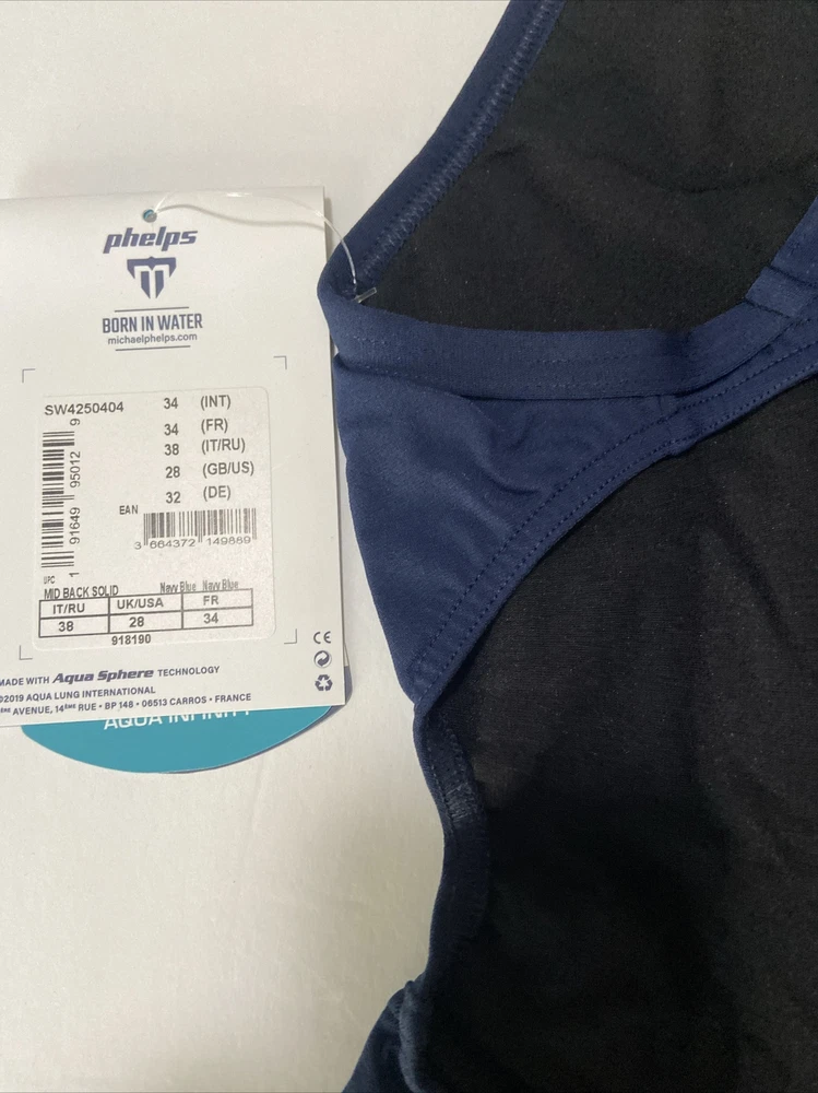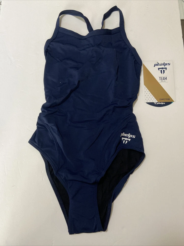 Comp Mid back solid Navy Blue Phelps Bathing suit Size 28 Swimsuit