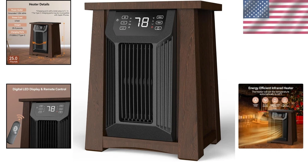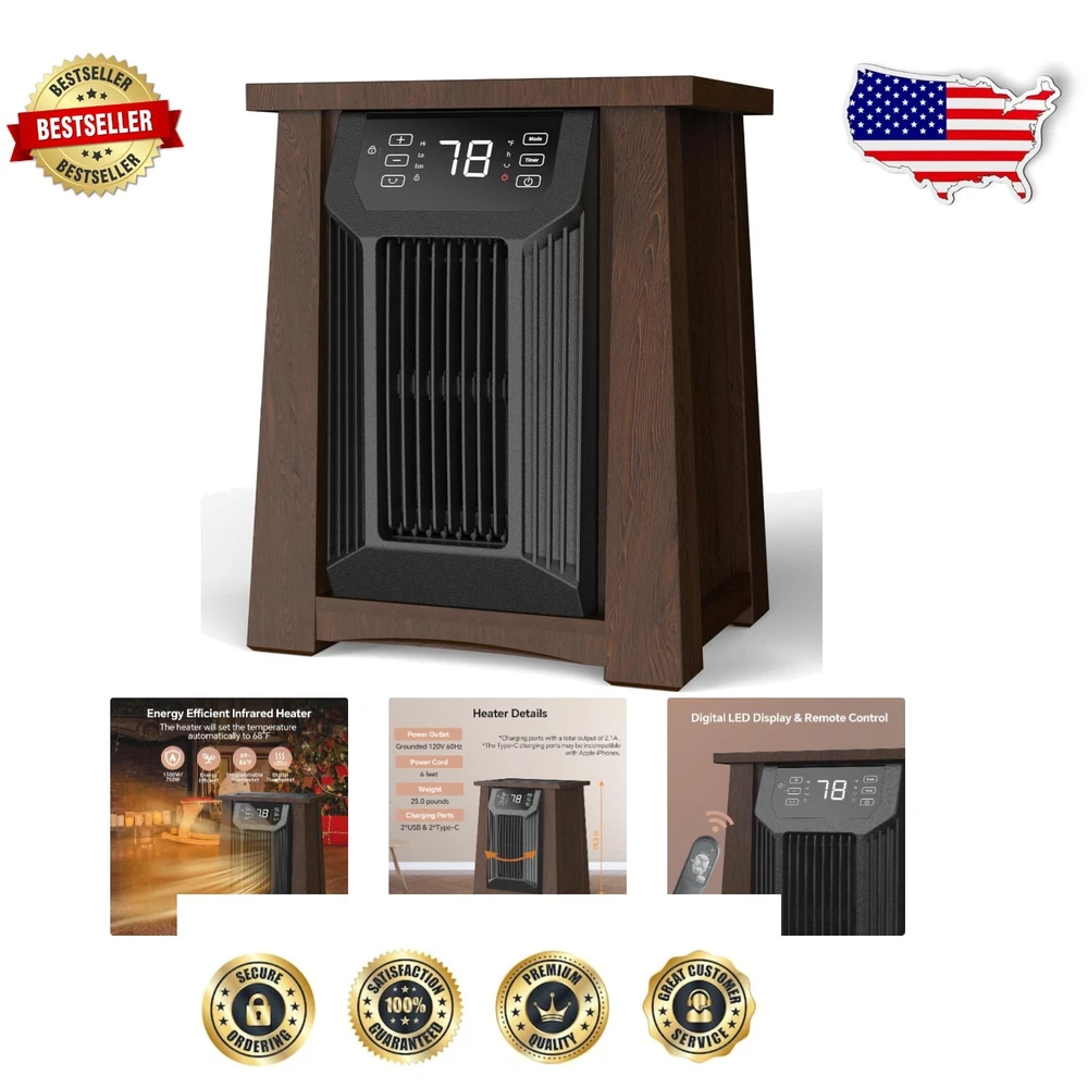 Compact 1500W Infrared Heater with Child Safety Lock & USB Ports - Walnut Finish ‹ › ‹ › ‹ › ‹ › ‹ › ‹ › ‹ › ‹ › ‹ › Compact 1500W Infrared Heater Experience the perfect blend of functionality and elegance with our Compact 1500W Infrared Heater, featuring a luxurious walnut finish. This innovative heater is designed with your comfort in mind while ensuring safety and energy efficiency. Specifications: Dimensions: 15.2"W x 12.9"D x 19.9"H Includes: 1 Electric Infrared Heater, 1 Remote Control (batteries not included), 1 Built-in Filter, 1 User's Manual, 1* 12-Month After-sale Service Key Features: Fast Warm-Up & Energy Efficiency: Choose from three heating settings: High (1500W), Low (750W), and ECO mode (maintains 68°F) to cater to your needs. Adjustable Thermostat: Easily set the temperature from 50°F to 90°F for tailored comfort. Comprehensive Safety Features: Equipped with an insulated cabinet, tip-over and overheat protection, ETL certification, and a child safety lock for peace of mind. Convenient Control: The included remote control, complete with LED indicators and a digital LED display, makes operation intuitive. 12-Hour Timer: Customize your heating schedule with a 12-hour timer that is easy to read and adjust. Elegant Design: The luxurious insulated wooden cabinet not only enhances decor but also maximizes insulation for efficient heating. Convenience: Features 2 USB ports and 2 Type-C ports for effortless charging of your devices. Why Choose Our Infrared Heater? Transform your living space into a warm, inviting haven with our Compact 1500W Infrared Heater. It’s not just a heater; it’s a stylish addition to your home that guarantees safety, efficiency, and elegance. Whether you’re warming up by the bedside on a chilly night or setting the mood in your living room, this heater is here to elevate your experience. Don't settle for ordinary home heating solutions. Choose luxury, comfort, and security - order your Compact 1500W Infrared Heater today! Shipping Free & Fast Shipping - We offer free shipping to most of the USA with a normal delivery time of 3-7 days. However, due to the current situation, additional delivery time (up to 3 weeks) may be required for some items. Alternative Carriers - We may use alternative carriers (e.g. USPS, FedEx, UPS, etc.) to ensure your package arrives safely and on time. Due to the use of multiple carriers, we are unable to provide a tracking number automatically. Handling Time - Orders are processed and shipped within 1-2 business days of receiving cleared payment. Shipping Restrictions - Shipping to Alaska, Hawaii, Puerto Rico, Guam, and other US territories may incur shipping charges or delivery restrictions. Please contact us before ordering, or your order can be refunded/cancelled. State Restrictions - There may be restrictions based on your state of purchase. For example, certain items may not be shipped to California due to state regulations. Contact for Tracking Updates - If you require tracking updates or have any concerns about the delivery of your order, please feel free to contact us, and we will be happy to assist you. Return 30-Day Hassle-Free Returns - We want you to be completely satisfied with your purchase. If you are not, you can return the item within 30 days of receiving it for a full refund or exchange. Easy Return Process - To start a return, simply contact us and we will provide you with a prepaid return shipping label and detailed instructions. Restocking Fee - There are no restocking fees for returns. However, the buyer is responsible for return shipping costs if the return is not due to a seller's error. Refund Processing Time - Refunds will be processed within 5 business days of receiving the returned item in its original condition. Payment We accept all major credit cards, PayPal, and Apple Pay for your convenience. Your payment information is secure and encrypted to ensure a safe and seamless transaction. Please complete your payment within 3 days of purchase to avoid any delays in shipping. Feedback Your feedback is extremely important to us. We strive to provide the best products and customer service possible. If you are satisfied with your purchase, please take a moment to leave us a positive review. If you have any concerns or issues with your order, please contact us before leaving negative feedback. We are committed to resolving any problems and ensuring your satisfaction. Contact Us If you have any questions or concerns, please feel free to reach out to our customer support team. You can contact us through the eBay messaging system. We are available Monday to Friday, 9:00 am to 5:00 pm EST, and we will do our best to respond to your inquiry within 24 hours. Buy it now and enjoy a pleasant shopping experience! UPC: Not Set Cable Length: Not Set Unit Quantity: 5 pounds Power Source: Electric Mounting Location: Desk/Tabletop Material: Wood Control Style: Digital,Remote Control Features: Timer Smart Home Protocol: Not Set Smart Home Compatibility: Not Set Refrigerant: Not Set Brand: Unbranded Type: Portable Heater Heating System: Not Set Color: Walnut Voltage: 120 V Model: Not Set Number of Heat Settings: 3 BTU Heating Rating: Not Set Energy Star: Not Set Power: 1501-2000 W Annual Fuel Utilization Efficiency (AFUE): Not Set Heating Element Format: Not Set Area Covered: 200-300 sq ft Heating Element Material: Not Set Item Width: Not Set Operating Sound Rating: Not Set Energy Efficiency Ratio (EER): Not Set Item Length: Not Set MPN: Not Set Item Depth: 12.9 in Tank Capacity: Not Set EC Range: Not Set Year Manufactured: Not Set Country/Region of Manufacture: Not Set Air Direction: Not Set Current Rating: Not Set Manufacturer Warranty: Not Set Timer Control: 12 hrs Tonnage: Not Set Unit Type: Unit