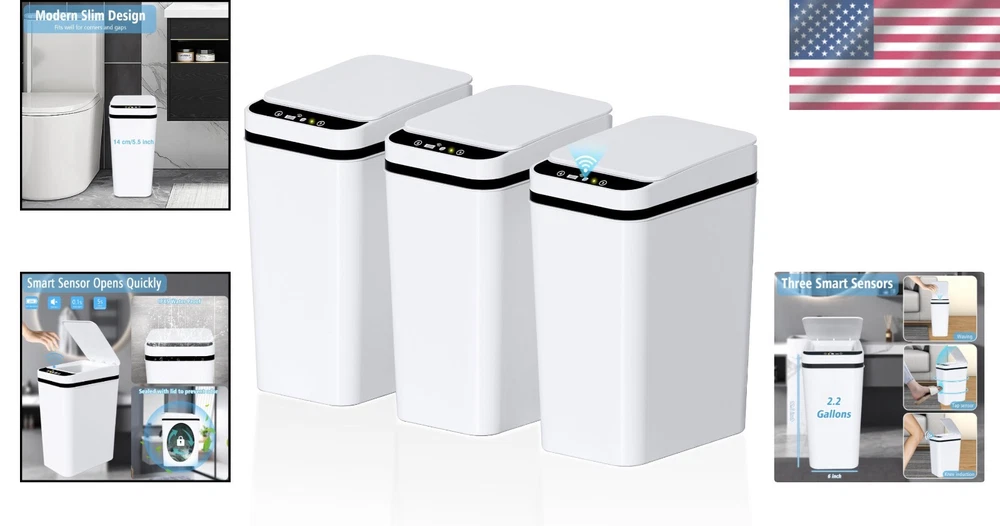 Compact 2.2 Gallon Motion Sensor Trash Can - Set of 3 Durable Bathroom Bins ‹ › ‹ › ‹ › ‹ › ‹ › ‹ › ‹ › ‹ › Compact 2.2 Gallon Motion Sensor Trash Can - Set of 3 Experience Convenience and Elegance in Waste Management Product Highlights: Smart Sensor Technology: Our advanced infrared motion sensor opens the lid automatically, ensuring a touchless, hygienic experience by closing after 5 seconds of inactivity. Waterproof and Durable: Crafted from high-quality ABS materials and IPX5 waterproof technology, this trash can stands up to water and humidity, ensuring lasting cleanliness. Space-Saving Design: Measuring 8.27''L × 6''W × 12.6''H, this slim, stylish trash can fits perfectly in any bathroom, kitchen, or room without occupying unnecessary space. Easy to Use and Maintain: Simply insert 2 AA batteries (not included) and enjoy effortless and odor-free disposal with zero complicated installation. Why Choose Our Motion Sensor Trash Can? Your bathroom deserves a blend of functionality and sophistication. With our Compact 2.2 Gallon Motion Sensor Trash Can , you will experience the ultimate convenience, designed to blend seamlessly into your decor while offering reliable performance. Rest assured, your satisfaction is our priority, which is why we back every order with a full money-back guarantee. With dedicated customer support and a Full-Service Manufacturer's Warranty, you can trust in the quality and longevity of these essential bathroom bins. Elevate your space with our stylish bins today and experience a new level of convenience in waste disposal! Shipping Free & Fast Shipping - We offer free shipping to most of the USA with a normal delivery time of 3-7 days. However, due to the current situation, additional delivery time (up to 3 weeks) may be required for some items. Alternative Carriers - We may use alternative carriers (e.g. USPS, FedEx, UPS, etc.) to ensure your package arrives safely and on time. Due to the use of multiple carriers, we are unable to provide a tracking number automatically. Handling Time - Orders are processed and shipped within 1-2 business days of receiving cleared payment. Shipping Restrictions - Shipping to Alaska, Hawaii, Puerto Rico, Guam, and other US territories may incur shipping charges or delivery restrictions. Please contact us before ordering, or your order can be refunded/cancelled. State Restrictions - There may be restrictions based on your state of purchase. For example, certain items may not be shipped to California due to state regulations. Contact for Tracking Updates - If you require tracking updates or have any concerns about the delivery of your order, please feel free to contact us, and we will be happy to assist you. Return 30-Day Hassle-Free Returns - We want you to be completely satisfied with your purchase. If you are not, you can return the item within 30 days of receiving it for a full refund or exchange. Easy Return Process - To start a return, simply contact us and we will provide you with a prepaid return shipping label and detailed instructions. Restocking Fee - There are no restocking fees for returns. However, the buyer is responsible for return shipping costs if the return is not due to a seller's error. Refund Processing Time - Refunds will be processed within 5 business days of receiving the returned item in its original condition. Payment We accept all major credit cards, PayPal, and Apple Pay for your convenience. Your payment information is secure and encrypted to ensure a safe and seamless transaction. Please complete your payment within 3 days of purchase to avoid any delays in shipping. Feedback Your feedback is extremely important to us. We strive to provide the best products and customer service possible. If you are satisfied with your purchase, please take a moment to leave us a positive review. If you have any concerns or issues with your order, please contact us before leaving negative feedback. We are committed to resolving any problems and ensuring your satisfaction. Contact Us If you have any questions or concerns, please feel free to reach out to our customer support team. You can contact us through the eBay messaging system. We are available Monday to Friday, 9:00 am to 5:00 pm EST, and we will do our best to respond to your inquiry within 24 hours. Thank you for supporting our small family business! UPC: Not Set Unit Quantity: 2.2 Room: Bathroom,Bedroom,Kitchen,Living Room,Laundry Room Material: Plastic,ABS Features: Automatic,Touchless,Motion Sensor,Waterproof Suitable For: Indoor Brand: Unbranded Item Height: Touchless Automatic Trash Can Item Length: Touchless Automatic Trash Can Item Width: Touchless Automatic Trash Can Type: Trash Can Color: White Capacity: 2.2 gal Size: Small Number of Compartments: 1 Model: Not Set Item Weight: 5.33 lb MPN: Not Set Shape: Square Style: Modern Pattern: Not Set Country/Region of Manufacture: Not Set Finish: Polished Unit Type: gal Personalize: Not Set