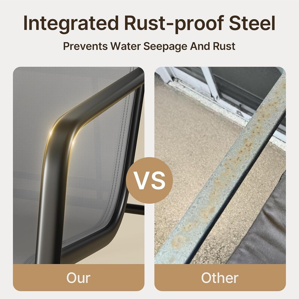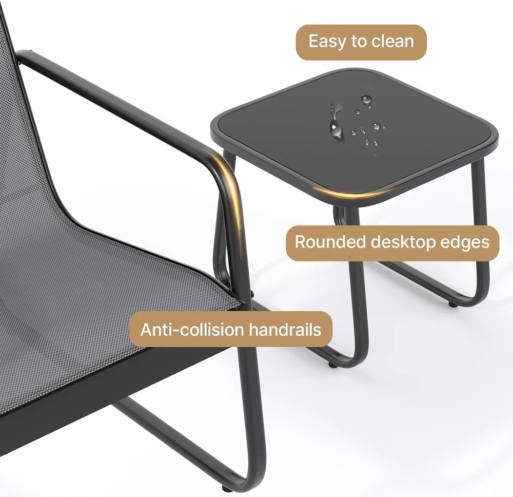 Small Outdoor Metal Table and Chairs Set of 2 Patio Furniture Set Clearance Sale About this item: Rust-Resistant and Impact-Resistant: Our patio chairs Set of 2 features a one-piece connected design to prevent rainwater from seeping in. The rounded design of the armrests and table corners helps prevent injuries Enhanced Textilene Material: Our outdoor bistro set uses enhanced, breathable, and cool Textilene material that is quick-drying, tear-resistant, easy to clean, and durable. It provides a premium and comfortable seating experience even in hot weather Sturdy and Durable: Our outdoor table and chair set is made of high-quality metal steel pipes, making them resistant to deformation and highly durable. The chair back is reinforced with additional metal supports to enhance stability and load-bearing capacity. The table is made of tempered glass for long-lasting use Suitable for Multiple Scenarios: Our outdoor grey bistro set features a simple and modern overall design, including two single chairs and a tempered glass table, making it perfect for outdoor gardens, lawns, patios, swimming pools, afternoon tea, and dinner. In addition, the table and chair bottoms are equipped with adjustable screws for easy leveling Need Installation and Good Service: All parts and instructions for our product are cleverly packaged together for easy assembly. If you have any questions, our professional customer service team is always ready to assist you