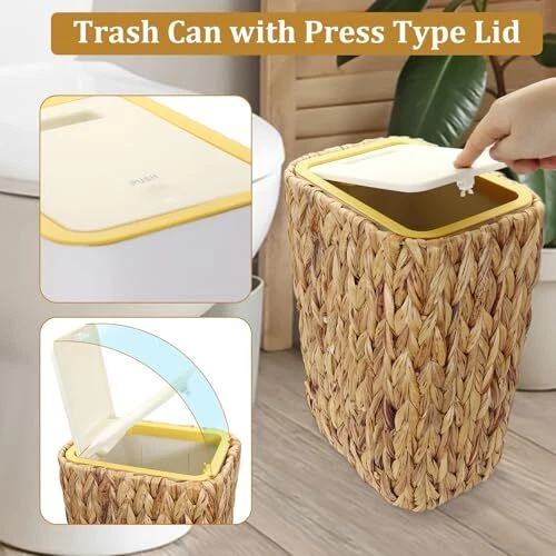 Menu 1. We require immediate payment. 2. We currently accept payment via eBay managed payments only. 3. Once payment is cleared, we will dispatch your shipment within 1-3 business days. Please refer to the "Shipping" tab for more information regarding shipping speed to your destination. Slim Trash Can with Lid, 3 Gallon Small Trash Garbage Can Skinny Rubbish Waste Bin Basket with Press Top, Narrow Woven Wicker Wastebasket Wastepaper Basket for Bathroom Bedroom Office Product description Great Size for Tight Spaces: The compact and sleek design of this slim narrow bathroom trash can makes it great for tight spaces such as bathrooms, bedrooms, or small kitchens. Measuring 10*7.0*14 inches. The slim profile of the minimal rectangular trash can allows the small bedroom trash can to fit in narrow areas, while the outer handwoven wicker small bedroom garbage can can easily match your interior décor, bringing natural beauty to any interior space. Keep Your Space Fresh: The boho bathroom thin trash can with lid traps garbage smells inside to avoid garbage exposure and odors. saying goodbye to those dirty and unpleasant smells. small pet-proof trash can with lid for bedroom ensure your space always smells fresh and clean. Clean lines and smooth surfaces of diaper waste basket make it easy to keep clean and maintain. Pets Proof Pop-up Lid Trash Can: Simply press the lid to open or close it, making disposal a breeze. The under sink slim trash can with lid provides a secure barrier to Prevent unwanted access by pets like dogs or cats while ensuring your furry friend stays away from trash. Laundry Hamper and Waste Basket 3 in1: You can disassemble it into a rattan laundry hamper and garbage basket at any time to meet your needs in all aspects. Whether used as a trash can or wastebasket, flower pot cover, dirty clothes bucket, garbage can, miscellaneous basket, storage basket, etc., Our 3-gallon wastebaskets are a great choice. What rooms do you need a wastebasket in? The simple answer is every room! From the kitchen, w most trash is produced, to the living room, bedrooms, office, den, dining room, and even the hallway. By increg the number of wastebaskets in your house, you reduce the probability that trash will accumulate in the wrong places, whether used as a trash can or wastebasket, flower pot cover, storage, or decoration PLEASE MESSAGE US IF YOU HAVE ANY OTHER QUESTIONS, AND MANY THANKS FOR READING ALL OF THIS. Copyright ©#. All Rights Reserved.