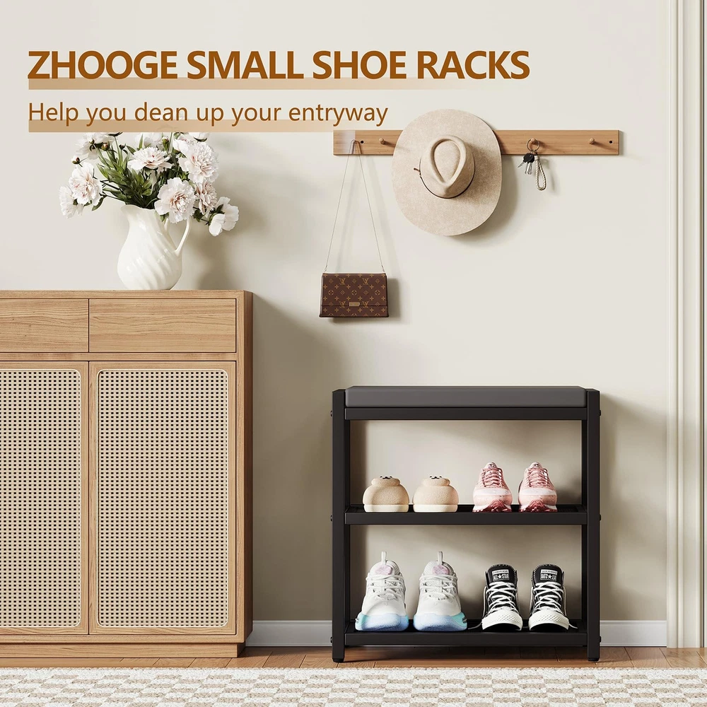 Shoe Bench Shoe Rack Storage Bench Entryway Bench Shoe Shelf with Seat Cushion, Stable Shoe Organizer for Entryway Comfortable Seats: Our Shoe Bench is designed with a detachable cushion to provide you with a comfortable shoe changing experience. The cushion is padded with thickened sponge and 1" thick, high-resilient, high-density foam, ensuring that you can sit on it comfortably without deformation. Strong Support: This shoe rack bench is built with a robust powder-coated steel frame, offering firm and reliable support. Say goodbye to hard, stone-like stools and try our comfortable Small Shoe Bench! It not only provides durability but also has a maximum static load of 300 lb, making it a strong seating option for your needs. Enough Storage Space: Organize your home in style with our Shoe Bench! Whether you need stylish storage for your foyer, entryway, or end-of-bed living room or bedroom, this practical shoe rack bench is the perfect solution. Its ample storage space allows you to neatly organize shoes, bags, books, and more, keeping your space clutter-free. Effortless Clean, Easy Assembly: Our upholstered Shoe Bench features an easy-to-clean synthetic leather surface, ensuring simple maintenance. Additionally, it comes with clear and straightforward instructions, along with an assembly tool, making setup a breeze. Spend less time on maintenance and assembly, and more time enjoying the convenience of our shoe rack bench. Satisfaction Customer Service: Your satisfaction is our top priority. In the rare event of rusted items due to wet weather, we have enhanced our quality control measures. If you open the box and find any rusted parts, please contact us immediately. We are committed to resolving the issue by sending you a new one or providing a 100% refund, ensuring your complete satisfaction.