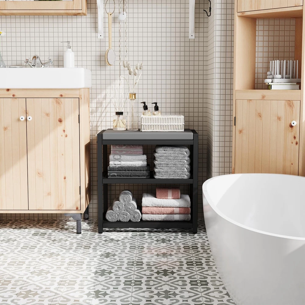 This shoe storage bench is a game-changer for small spaces! The comfy cushion makes putting on shoes a breeze, and the sturdy steel frame holds up to 300lbs. It fits neatly in our entryway while organizing 8-10 pairs of shoes perfectly. The modern design looks great, and assembly was surprisingly simple. The foam cushion really stays firm even with daily use - no sagging at all! We use it for shoes, bags, and as extra seating when guests come over. For the price, the quality exceeded our expectations. No more tripping over shoes by the door!