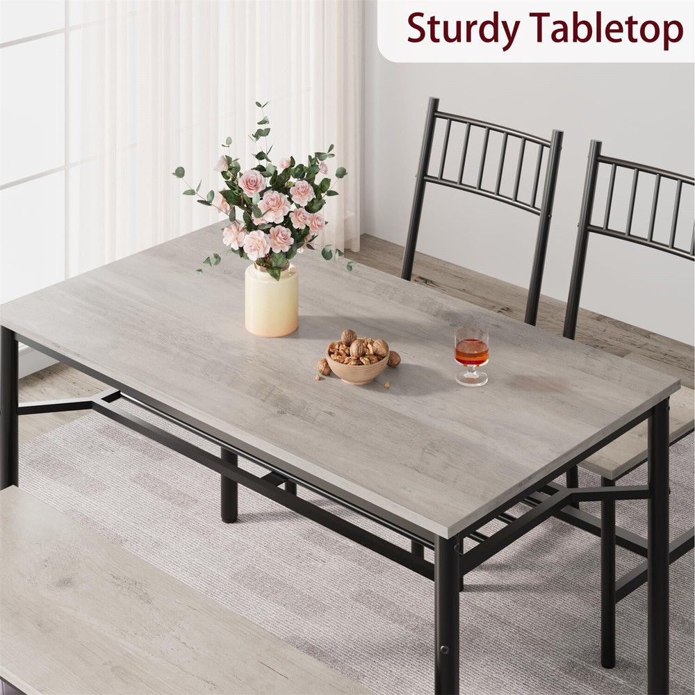 1. This dining set is a fantastic addition to any kitchen! The sturdy MDF and solid steel frame ensures durability, while the thick seats keep you comfortable during meals. The storage bench is a great space-saving feature, and the larger metal pipes add extra stability. Perfect for small families or cozy gatherings—love the farmhouse style!