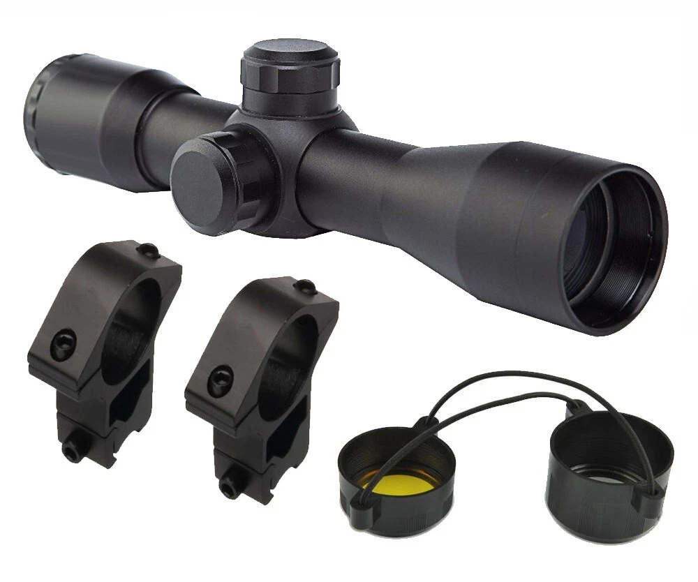 This is a 4x30 Compact Size Rifle Scope With Two Sets Of Scope Ring Mounts This Item Fits Winchester 9422 .22 Lever Action Rifle ! Free USPS Priority Mail Shipping Within The USA ! ( Catalog# SCOPE4X30+QD10T ) Product Details: - Material: Aluminum - Color: Matte black - Magnification: 4x - Series: Tactical - Range estimating reticle - Effective Objective Diameter: 30mm - Adjustment Graduation: 1/4" MOA - Objective Diameter: 30mm - Rifle Exit Pupil: 7.5 mm - Eye Relief: 3" - Length: 7.75 in - Maximum Field of View at 100 Yard: 26.2 ft - With a 4x magnification in this scope, you can clearly view the object from a long distance and shoot accurately - Multi coated lenses reduces light reflections, enabling better light transmission for good visibility - The exterior black matte finish on this compact rifle scope offers a smooth and stylish look - Includes a set of aluminum 3/8" dovetail scope rings with a matching matte black finish - Scope rings fit t3/8" wide Dovetail type grooves which commonly found on many rimfire rifles - We provide two sets of rings so that you can use the scope on multiple different rifles - Simple bolt-on installation Item is brand new. Return Policy: Item must be returned within 30 days in undamaged condition with all included parts/accessories. You must contact me first before returning the item so I can give you detailed instructions. No refund on the shipping costs, All shipping costs to be paid by customer. A refund will be issued upon receipt of merchandise in the form of paypal funds. Please ask any questions before bidding. Free shipping within the USA via USPS mail. Sorry but No International Bidders. We accept only Paypal. Your order will ship within 1 business days of receipt of payment in full. We do not offer any kind of special mailing services including overnight delivery & express mail. We will combine shipping on most multiple item purchases , contact us for details. Payment in full must be received within 7 days of auction close. If all terms of this auction are not met, we reserve the right to re-list this item and report you as a non-paying-bidder.