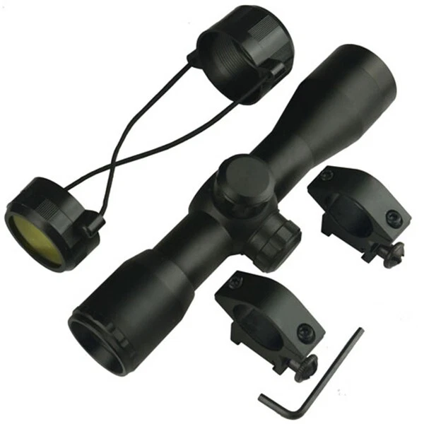 This is a 4x32 Compact Size Rifle Scope With Aluminum Scope Rings This item Fits Picatinny Type Rails ! Free USPS Priority Mail Shipping Within The USA ! ( Catalog# FI/ 4X32SCOPE ) Product Details: - Material: Aluminum - Color: Matte black - Magnification: 4x - Series: Tactical - Range estimating reticle - Effective Objective Diameter: 32mm - Adjustment Graduation: 1/4" MOA - Objective Diameter: 32mm - Rifle Exit Pupil: 7.5 mm - Eye Relief: 3" - Length: 7.75 in - Maximum Field of View at 100 Yard: 26.2 ft - With a 4x magnification in this scope, you can clearly view the object from a long distance and shoot accurately - Multi coated lenses reduces light reflections, enabling better light transmission for good visibility - The exterior black matte finish on this compact rifle scope offers a smooth and stylish look - Includes aluminum scope rings mounts and a Picatinny type scope mount rail with mounting hardware - Simple bolt-on installation Item is brand new. Return Policy: Item must be returned within 30 days in undamaged condition with all included parts/accessories. You must contact me first before returning the item so I can give you detailed instructions. No refund on the shipping costs, All shipping costs to be paid by customer. A refund will be issued upon receipt of merchandise in the form of paypal funds. Please ask any questions before bidding. Free shipping within the USA via USPS mail. Sorry but No International Bidders. We accept only Paypal. Your order will ship within 1 business days of receipt of payment in full. We do not offer any kind of special mailing services including overnight delivery & express mail. We will combine shipping on most multiple item purchases , contact us for details. Payment in full must be received within 7 days of auction close. If all terms of this auction are not met, we reserve the right to re-list this item and report you as a non-paying-bidder.