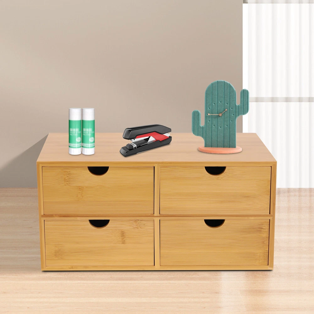 Compact Bamboo Desktop Organizer with 2/3/4 Drawers – Minimalist Design