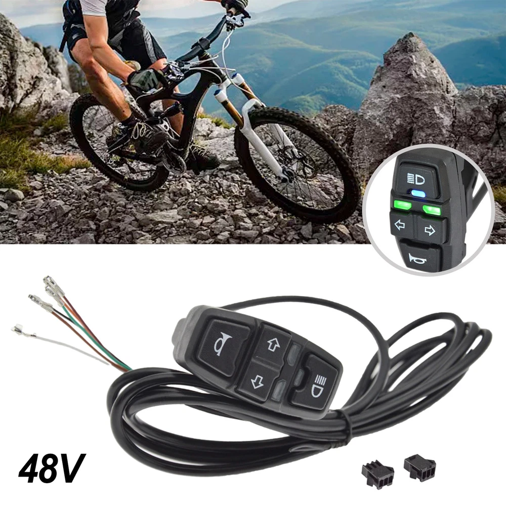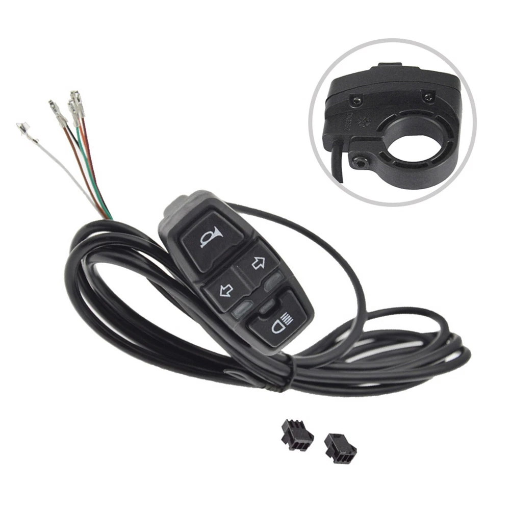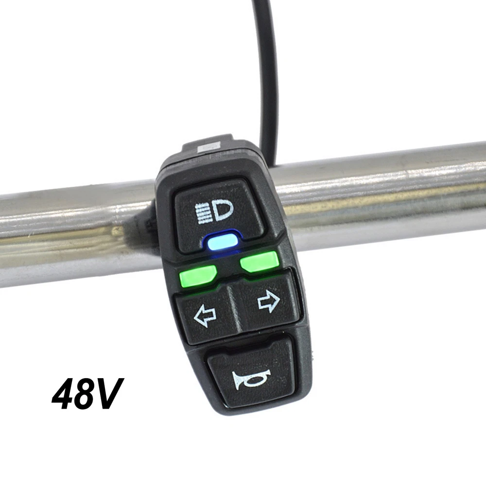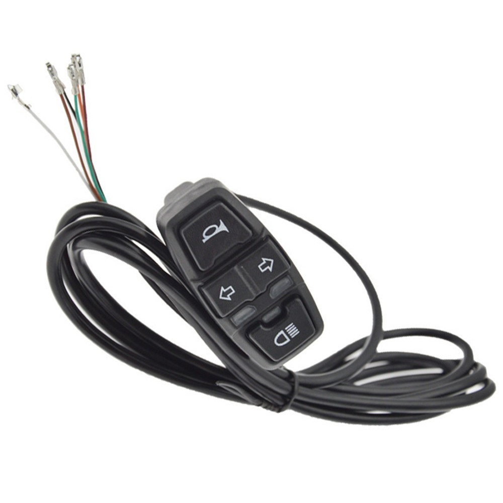 Features: *This handlebar switch is made of high-quality nylon material, strong, waterproof, sturdy and for long-term use. *The switch is small in size, easy to assemble, suitable for handlebars with a diameter of 2 cm. *Three-in- function, headlight, , turn signal switch, switch. *Compact and lightweight, perfect match with other accessories, suitable for any road bike, motorcycle, electric bike, scooter, . *The switch is easy to install-wire connection for easy access and control, bringing you a better driving experience. Specific ation: *Material:Nylon *Color:black *Size:5.4*5.4*2.7CM *Specification:36V、48V Package Contents: 1*Front light turn signal switch Note: 1. The real color of the item may be slightly different from the pictures shown on website caused by many factors such as brightness of your monitor and light brightness. 2. Please allow slight manual measurement deviation for the data.
