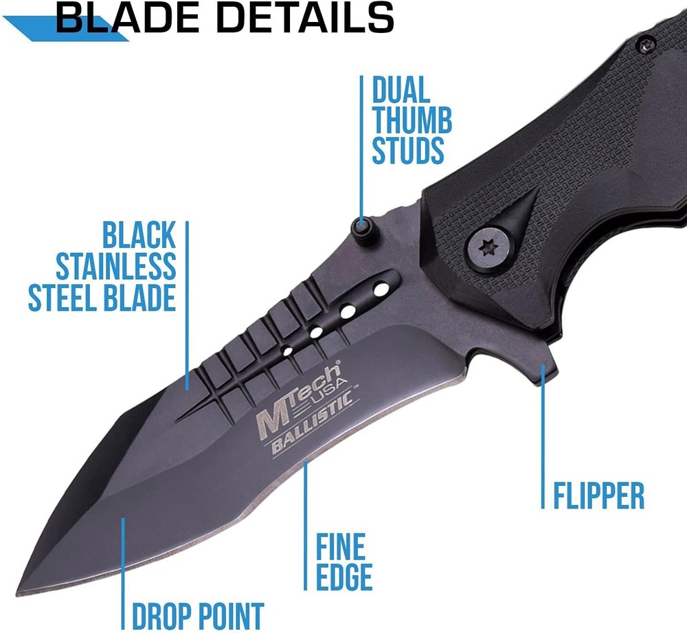 Versatile Folding Knife with Black Stainless Steel Blade - Ideal for Outdoors ‹ › ‹ › ‹ › ‹ › ‹ › ‹ › ‹ › ‹ › ‹ › ‹ › ‹ › Versatile Folding Knife with Black Stainless Steel Blade An essential companion for the outdoor enthusiast, our Versatile Folding Knife combines functionality with an elegant design, ensuring you are always prepared for any situation. Key Features: Rapid one-handed deployment thanks to the spring assist mechanism. Locks securely into place with a reliable liner lock for safety during use. 3.75-inch black stainless steel blade with a thickness of 3.5mm, ensuring durability and strength. Easy and fast access with a thumb stud for seamless deployment. Stylish black aluminum handle featuring a sleek cut-out design. Equipped with a pocket clip for convenient and safe carry. Includes a seatbelt cutter and glass breaker for emergencies, making it a versatile rescue knife. Compact size: measures 5 inches when closed, perfect for pocket storage. Embrace Adventure: This folding knife is more than just a tool—it's a lifeline in unexpected circumstances. Whether you’re camping, hiking, boating, or simply enjoying the outdoors, this knife stands ready to assist you in a variety of tasks. From cutting ropes and preparing food to handling emergencies, its robust features are designed to tackle any challenge. Why Choose Our Versatile Folding Knife? Designed for those who appreciate both style and function, this knife offers a perfect blend of elegance and practicality. The thoughtful integration of a seatbelt cutter and glass breaker ensures that you’re equipped for emergencies, while its lightweight construction allows for easy portability. Experience the reliability and craftsmanship suited for your adventurous spirit with our Versatile Folding Knife. Upgrade your outdoor experience—secure your Versatile Folding Knife today! Shipping Free & Fast Shipping - We offer free shipping to most of the USA with a normal delivery time of 3-7 days. However, due to the current situation, additional delivery time (up to 3 weeks) may be required for some items. Alternative Carriers - We may use alternative carriers (e.g. USPS, FedEx, UPS, etc.) to ensure your package arrives safely and on time. Due to the use of multiple carriers, we are unable to provide a tracking number automatically. Handling Time - Orders are processed and shipped within 1-2 business days of receiving cleared payment. Shipping Restrictions - Shipping to Alaska, Hawaii, Puerto Rico, Guam, and other US territories may incur shipping charges or delivery restrictions. Please contact us before ordering, or your order can be refunded/cancelled. State Restrictions - There may be restrictions based on your state of purchase. For example, certain items may not be shipped to California due to state regulations. Contact for Tracking Updates - If you require tracking updates or have any concerns about the delivery of your order, please feel free to contact us, and we will be happy to assist you. Return 30-Day Hassle-Free Returns - We want you to be completely satisfied with your purchase. If you are not, you can return the item within 30 days of receiving it for a full refund or exchange. Easy Return Process - To start a return, simply contact us and we will provide you with a prepaid return shipping label and detailed instructions. Restocking Fee - There are no restocking fees for returns. However, the buyer is responsible for return shipping costs if the return is not due to a seller's error. Refund Processing Time - Refunds will be processed within 5 business days of receiving the returned item in its condition. Payment We accept all major credit cards, PayPal, and Apple Pay for your convenience. Your payment information is secure and encrypted to ensure a safe and seamless transaction. Please complete your payment within 3 days of purchase to avoid any delays in shipping. Feedback Your feedback is extremely important to us. We strive to provide the best products and customer service possible. If you are satisfied with your purchase, please take a moment to leave us a positive review. If you have any concerns or issues with your order, please contact us before leaving negative feedback. We are committed to resolving any problems and ensuring your satisfaction. Contact Us If you have any questions or concerns, please feel free to out to our customer support team. You can contact us through the eBay messaging system. We are available Monday to Friday, 9:00 am to 5:00 pm EST, and we will do our best to respond to your inquiry within 24 hours. Buy it now and enjoy a pleasant shopping experience! : Spring Assisted Knife Blade Type: Clip Point Tools: Spring Assisted Knife Model: Spring Assisted Knife Number of Blades: 1 Color: Black Type: Tactical Handle Material: Aluminum Opening Mechanism: Assisted Blade Edge: Plain Lock Type: Liner Blade Range: 2.76 - 4in. Blade Material: Stainless Steel Dexterity: Ambidextrous