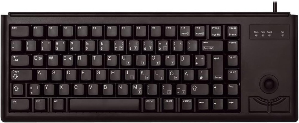 Further Details Title: CHERRY Compact Keyboard G84-4400, international layout, QWERTY keyboard, wired keyboard, mechanical keyboard, ML mechanics, integrated optical trackball plus 2 mouse buttons, black Condition: New Description: Is a pointing device required? For reasons of space, but no extra mouse can be used? Then recommends the ultra-flat compact keyboard with integrated trackball. It is excellent for 19 inch applications, slim line PCs and notebooks. Key Benefits • Individual keys with Gold Crosspoint contacts (ML technology) • Designed for continuous use - over 20 million operations each button • High reliability and uniquely precise actuation feeling • Integrated optical trackball plus 2 mouse buttons • Extremely flat - total height just 20mm • Light weight • 83/84-key layout with full functionality of a standard keyboard • Usable with standard drivers of the operating system • Ideal for tight spaces and for 19" applications Brand: Cherry Europe GmbH Color: black Compatible With: Laptop, PC Character: Modern Material: Acrylonitrile Butadiene Styrene Series: CHERRY G84-4400 TRACKBALL KEYBOARD Connectivity: USB-A Item Weight: 570g Dimensions: 37 x 13.9 x 1.96 cm; 570 g Item Length: 370mm Item Width: 139mm Item Height: 19mm Language: English, English, English, English, English Style: Modern Number of Battery Cells: 5 Type: Keyboards MPN: -4400LUBEU-2 Package weight: 0.72 kilograms Item package dimensions: 3L x19.2Wx38.6H centimeters Model Number :G84-4400LUBEU-2 Item package quantity: 1.0 Missing Information? Please contact us if any details are missing and where possible we will add the information to our listing.