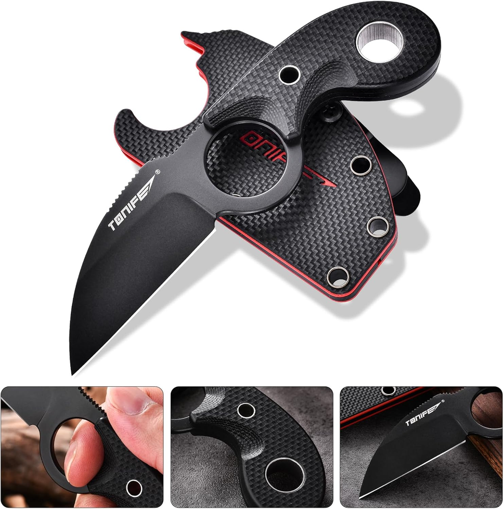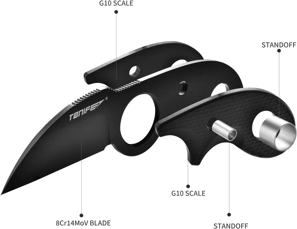 Small Knife with Sheath: TONIFE Crescent is a perfect small fixed blade knife suitable for your EDC equipment; The total length is 5.51 inches. Lightweight EDC Knife: EDC knife is a great everyday carry knife; It can be used as a belt knife or pocket knife, and you can quickly remove this small knife from the sheath to prepare from time to time. Full Tang Fixed Blade Knife: Durable 8Cr14MoV stainless steel construction handles a variety of work tasks as a backup knife; Full tang blade makes the knife more durable. Fixed Blade Knife with Textured G10 Handle: The G10 handle of the fixed blade is in line with the design of ergonomics. It has the characteristics of durability, weather resistance, and excellent grip. It is easy to maintain Fixed Blade Knife Sheath -Sheath is made of G10. The solid and lightweight G10 sheath can ensure excellent protection for the blade. The adjustable sheath clip design allows the small knife to be clipped to a belt, boots, pocket, or thin collar for easy carrying. Product Description TONIFE Crescent Full Tang Knife This full-tang knife is very suitable for outdoor work. It can be used as an EDC fixed blade knife, camping knife, belt knife and self-defense knife. The sheath design can protect the blade at any time, so you have a sharp knife. HKT2022 Series Blade steel: 8Cr14MoV Blade length: 2.17" Total length: 5.51" Weight: 2.5oz.(71 g) Handle: G10 Color: Black/Green/Warm Sand Sharp Blade The blade of this fixed blade knife is designed with 8Cr14MoV stainless steel, which is not easy to rust, stain-resistant, sharp, and not easy to break. It is no problem to cut ropes, cut branches, and cut fruits during outdoor activities. It is a good helper for outdoor activities that can be used with confidence. G10 Handle This knives for men features a G10 handle that is durable, weatherproof, has a strong grip, is lightweight, and is easy to maintain, allowing it to be used for long periods of time without causing discomfort to your hands. Knife Sheath Clip The belt knife is equipped with a knife sheath clip. The removable knife sheath clip design can easily clip the pocket knife to a thin collar, pocket, wallet, or pants, allowing you to carry it with you and not easily lose it. Knife Sheath The knife comes with a knife sheath and a rope. The knife sheath can protect the blade at any time, making it less likely to be damaged. The rope can be used to hang the straight knife on your body at any time, which is convenient for carrying and can also prevent loss. Fixed Blade Knife With Sheath The full tang knife, the knife sheath and knife sheath clip work together to highlight its portability for outdoor activities. You can hang it on your body at ordinary times and take it out directly for use when necessary. Fast cutting It can quickly cut branches, paper, food, ropes, wood, etc. It is the best companion for outdoor survival.