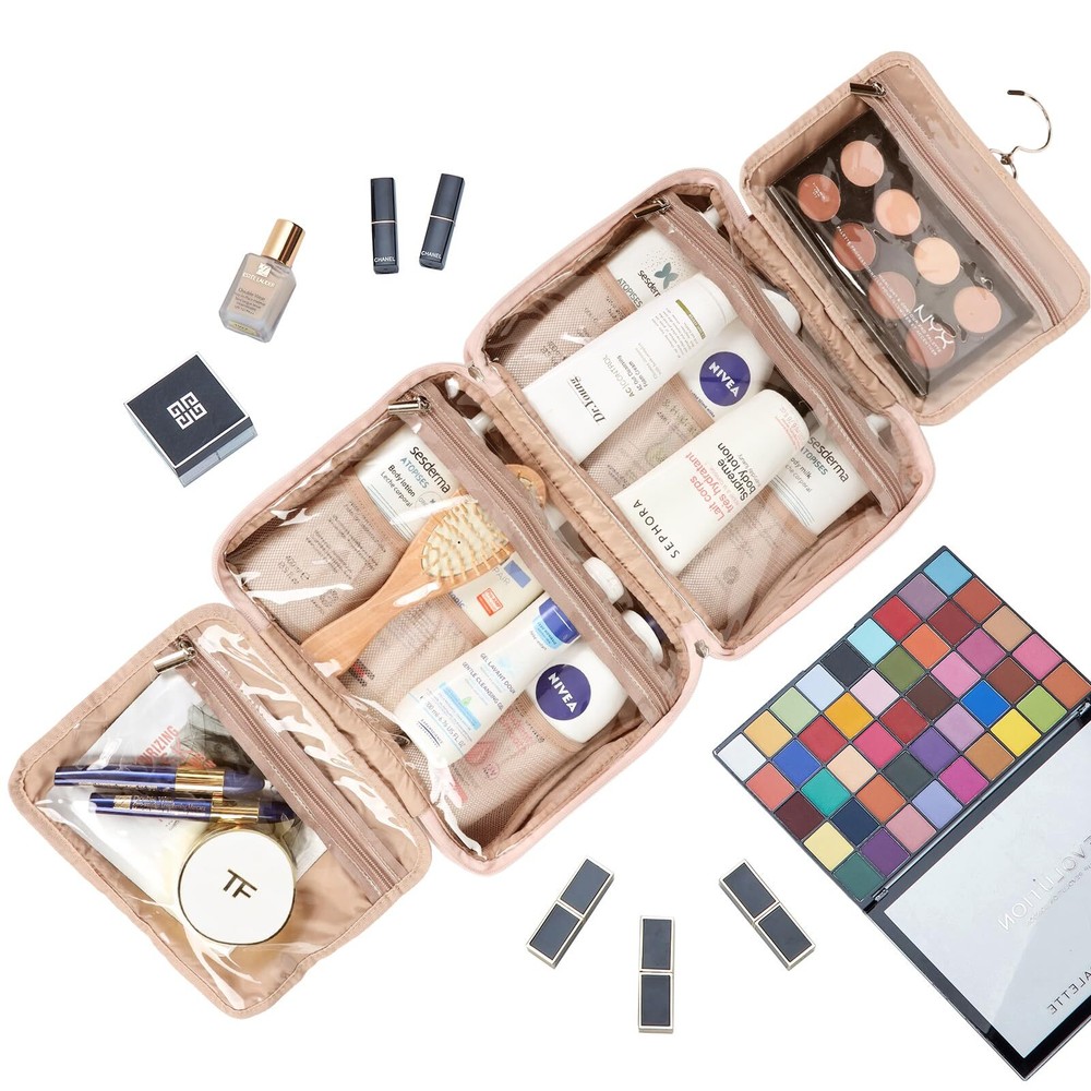 NISHEL Hanging Travel Toiletry Bag, Visible Makeup Organizer, Cosmetic Case for Journey Accessories, Bathroom Shower, Pink SPACIOUS CAPACITY - 12 x 4.5 x 9 inches (rolled), 12.5 x 35.5 inches (open). The space-efficient hanging toiletry bag can hold all your travel essentials: full-sized shampoo, Conditioner, and Skin care products MAKEUP BRUSHES & LAEGE EYESHADOW PALETTE SECTION - The sizeable front pocket is a special section for storing your 1 set of makeup brushes and large-size eyeshadow palette UNIQUE INTERIOR DESIGN - 2 main compartments with mesh pouches and elastic bands hold bottles upright. Different size elastic straps fit for sizes of bottles, easy to grab exactly what you need STURDY HOOK DESIGN - Special U-shape zippers design, take out the toiletries or zip up the toiletry case quickly. No more unpacking, digging through one bag, and laying your stuff on the bathroom counter. Just hang the bag up, grab what you need, and put it back in it SOFT & LIGHTWEIGHT MATERIAL - The outside material of the toiletry bag is soft to the touch and lightweight. You can pack this reasonably flat if you don't pack too much stuff, making it more suitable for travel. Definitely an ideal Christmas gift for yourself, your family, and your friend SHIPPING Domestic Buyers - We have confidence in our products, but if you are not fully satisfied please contact us within 30 days of purchase and you will get full refund. - We ship within 3 business days of payment, usually sooner - We offer FREE shipping on all orders! - We only ship to the lower 48 states, no APO/FPO addresses or PO Boxes allowed International buyers – please note: Import duties, taxes, and charges aren't included in the item price or postage cost. These charges are the buyer's responsibility. - Please check with your country's customs office to determine what these additional costs will be prior to bidding or buying. * Order Cancellation Policy ** You can return a product for up to 30 days from the date you purchased it. 1. The seller reserves the right to cancel the special case only due to eBay cancellation fee. 2. The decision of seller is the final. 3. The seller will respond to the cancellation request within 2 business days. Please wait for the result of cancellation. 4. In case the cancellation is not completed by some reasons, the buyer can follow the options below to get the refund. 4.1 The buyer can reject the item when it arrives. 4.2 The buyer can send the item back to the seller within 30 days If the buyer receives item (USA Shipment ONLY). The seller will provide the FREE return label to the buyer when the buyer opens " Return Item" case on eBay by using the reason as "Change my mind" ONLY. 5. When buyer has placed the order. The order will be processed and completed by automatic warehouse system within 5 minutes. In case that buyer sends the cancellation request after 5 minutes of placing the order, the request will be rejected. **Sending direct message to cancel the order is not allowed for every case.* Return Policy For the return case - If buyer would like to return the items for refund or replacement, please CONTACT SELLER to receive the free return label from seller. The refund or replacement will be processed with the tracking number of return label which is provided by seller only. The other ways of return which are not approved by seller will not be processed for the refund or replacement.