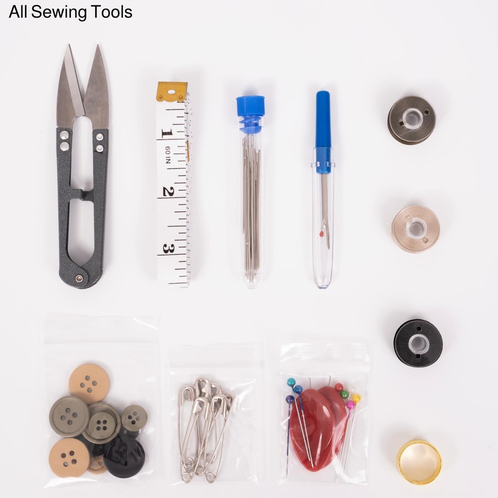 THE TACTICAL MILITARY SURVIVAL KIT Always be prepared to mend, pin, or stitch with our military grade hiking survival kit and camping sewing kit. This essential survival gear and equipment comes in a convenient, easy to carry case that features high-quality sewing pins, 3 threaded bobbins, sewing needles, and fabric scissors. Everything you need to reattach a button, stitch a loose hem, snip a hanging thread and repair any other issues with your clothing, tent, backpack, or any fabric item. WHAT'S IN THE SEWING KIT ●18 x Large-eye sewing needles ●6 x Straight Pins ●6 x Safety Pins ●4 x Woodland buttons ●4 x Desert buttons ●4 x Black buttons ●3 x Upholstery thread (15m/spool) ●2 x Needle threader ●1 x Seam ripper ●1 x Thimble ●1 x Yarn scissors ●1 x Tape measure ●1 x Compact Nylon Zipper Case With Pocket All YOU NEED IN SEWING: The kit contains all the necessary tools that are required for performing basic repairs, be it a needles, threads, scissors, buttons, threader tools, seam ripper and all sewing tools. CONVENIENT & PORTABLE: The survival sewing kit has a durable nylon case with zipper, allowing you to organize all the necessary sewing supplies used in the field. Keep your threads, needles, pins, buttons, and scissors organized and accessible. TACTICAL SEWING KIT: The emergency sewing kit comes complete with the appropriate military buttons, three large thread spools(1 woodland spool, 1 desert spool and 1 black spool of thread), high-quality needles, pins, scissors, etc. Each tool is carefully selected to meet rigorous military standards. DURABLE NYLON CASE: Crafted from nylon, the heavy duty sewing kit's case is built to withstand tough conditions & provide years of dependable service. The durable construction ensures that your supplies remain protected & secure during transport & storage. AFFORDABLE: As always with waterproof tactical gear, our outdoor sewing kit is affordable and made for very tough conditions. Rest assured that you are investing in a sewing kit designed to thrive in tough conditions, offering exceptional value for your investment.