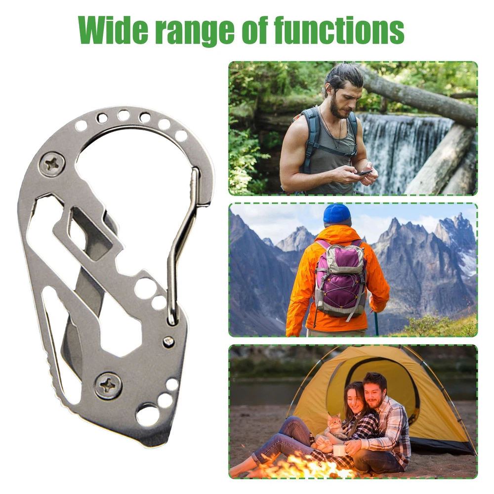 1x Multi Tool Keychain Small Opener Carabiner Keychain Tools Keys Holder Product Description Bullet Points: Multiple Purposes: This multi tool carabiner is a multifunctional outdoor gadget that integrates multiple practical tools, including pliers, can opener, and more. Must have for daily life and outdoor activities, it's perfectly portable as a keychain or clip-on accessory, making it the ideal solution for all your handiwork needs Unique Design: Improve your outdoor adventures with our multi-eye carabiner's unique design. Its rope fixing point and use as a buckle provide safety and convenience for all your gear High-Hardness and Wear Resistant: Built with excellent quality and high-hardness 304 stainless steel, this Multi Tool Carabiner provides dependable and long-lasting performance, making it the perfect gear for harsh environments Portable Design: Small and exquisite, effortlessly fits in your pocket or attaches to your keychain, ensuring lightweight convenience you can take any time Optimized Accessibility: Neatly store all commonly used tools and keys in 1 convenient place, enhancing life efficiency and simplifying the finding and using process Our Multi Tool Carabiner is perfect for outdoor activities. With built-in bottle openers, serrating cutters, and more, it provides good performance. It can also be used as a buckle and easily put in your pocket. This convenient tool is a must-have for adventurers of all levels. Specification: Name: Multi Tool Carabiner Material: Stainless steel Product Size: about 88 x 50 x 2.5mm/3.46 x 1.97 x 0.10in Scope of Application: Outdoor, camping, gift box Packing List: 1* Multi Tool Carabiner Notes: 1. Due to the different monitor and light effects, the actual color of the item might be slightly different from the color which is showed in the pictures. 2. Please forgive a slight measuring deviation due to manual measurement. Payment 1.PayPal is a preferred Payment method. if you Do NoT have a Paypal account, please go to www.paypal.com register. 2.You can make a Credit payment via Paypal.Paypal will let you use MasterCard,Visa to pay. 3.Payment should be completed within 3 days after auction closed, or unpaid dispute will be filed for an closing auction.An unpaid case will be filled after 4 days. Delivery details 1. We ship to many countries. 2. Delivery Time: Ship from China via Speedpak to US (takes 8-12 days) Ship from China via others shipping method to other countries (takes 15-60 days) 3. If you want to choose another address, please leave us a message on ebay.Please check your shipping address carefully before checkout,it can't be changed if order completed. Seriously promise:Refund or resend will be offered if item still not arrive in 7-10 business days. Just send us an email,we will give you a satisfied solution as soon as possible. Return policy 1.All item comes with Basic 3 Months Sellers Warranty, if item defective in 3 months,We will offer replacement without extra charger (including shipping fee) After we receive the defective item. If item Defective after 3 Month, Buyers can still send it back, We will contact suppliers or Manufactory for Warranty. Buyers Might Need pay the Shipping fee For resend the replaced item. 2.If item DOA(Dead of Arrival), Buyers can return it in 30 Days, we will replace it with new item after we receive DOA item. Please Contact us Before you sent the item back. 3.All item can be returned for exchange only. The buyer has responsibility for all return shipping including DOA or defective return. About Feedback When you receive the item and satisfied with the product, please leave positive feedback and 5 scores DSR. We will leave a 5 Scores DSR feedback for you. If, for any reason you are not satisfied with your purchase, please contact via Ebay Message and we will do our best to resolve it. Please don't leave neutral or negative feedback without any communition with .