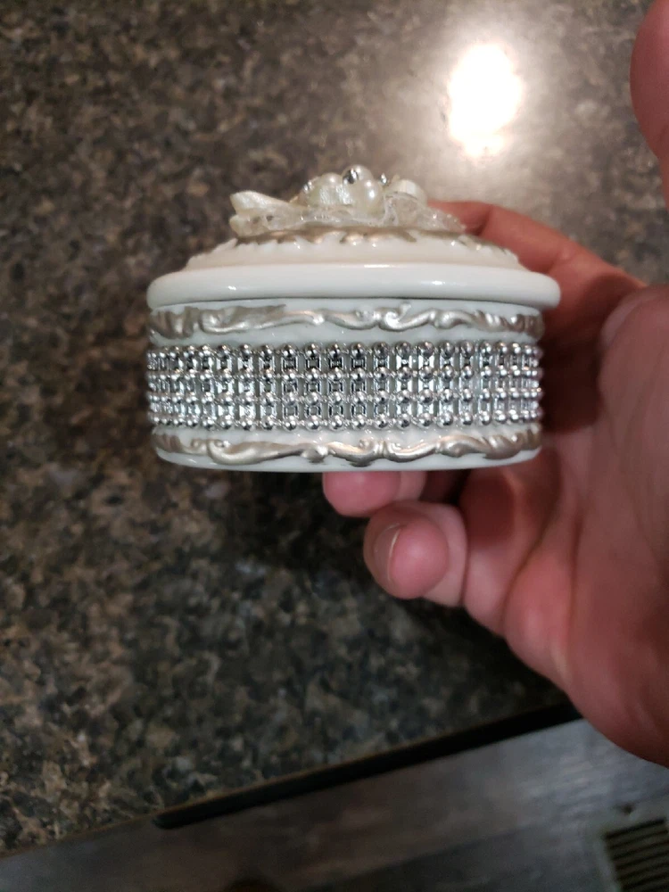 This small porcelain trinket box is perfect for storing your jewelry or other small treasures. Made from high-quality porcelain, it's both durable and elegant in design. With its compact size, it's ideal for travel or for display on your dresser or vanity. Measuring just a few inches in size, this trinket box is perfect for collectors of all types. Whether you're a fan of decorative collectibles or just looking for a unique way to store your jewelry, this porcelain container is sure to impress. Its intricate design and delicate beauty make it a great addition to any collection.