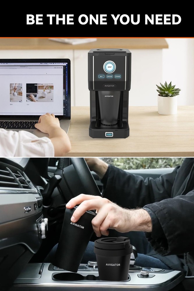 Single Serve Drip Coffee Maker Machines– Brew Perfection in Every Cup mini one cup drip coffee machine featuring brew strength control, you can simply customize your brew from strong to medium and mild, ensuring every sip matches your preference. single-serve coffee maker is ideal for small kitchens, dorm rooms, office spaces and counter space, delivering convenience without sacrificing quality. It comes with an 11oz. thermal travel mug that keeps your coffee hot, making it perfect for busy mornings or on-the-go adventures. For less waste of disposable paper filters or plastic, provide a reusable filter for this 2 cup coffee maker. Not only reduce paying to disposable accessories, also easy for cleaning. Addionally you could brew with your own mug that smaller than 11oz., place the height adjustable tray under the cup tray and place the mug on it. Simply add your favorite pre-ground coffee beans, choose the brew strength by pressing button, what to do next is to enjoy a fresh, barista-style cup. Personal Compact Coffee maker: single serve coffee maker machines come with 11oz Thermal travel mug and lid to keep the ideal teampture, and this double layer mug fits most car cup holders Adjustable Brew Strength Setting: 3 options (mild/medium/strong) to meet your demand of strong coffee or weaker flavor; Fast brewing takes up less than 7 minutes for a fresh & hot 11 oz. coffee Compact Size: single Cup drip coffee maker measures 7.7"D x 5.5 "W x 11.8"H, perfect for small kitchens, apartments, and dorm rooms Simple operation: touch the button to turn on/off and brew strength control, make it simple for daily fresh and hot coffee Reusable Filter Accessory: single-serve coffee maker is compatible for coffee grounds, you could add pre-ground to brew; wash it with water after brewing for less waste of plastic Single Serve Drip Coffee Maker offer top-notch after-sales service. Enjoy peace of mind with a 30-day return policy and a free 12-month warranty. Contact our professional customer service team for solutions within 24 hours via email