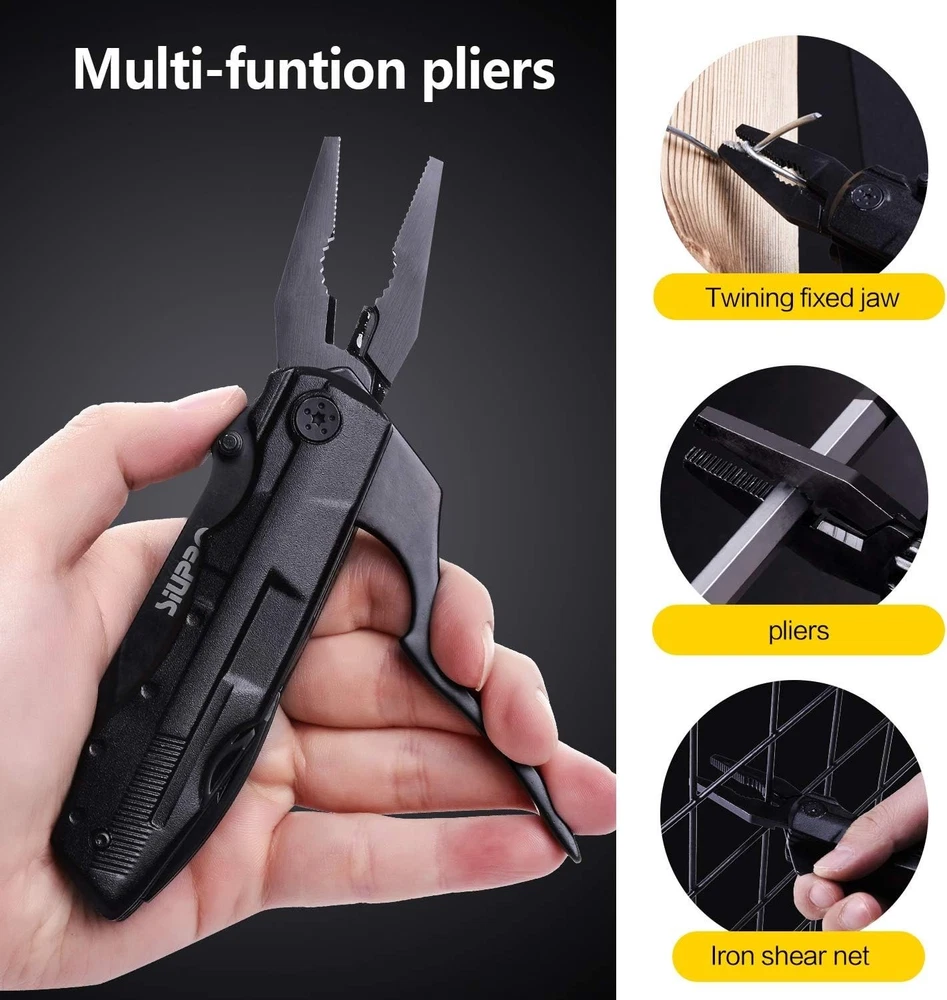 Compact Tactical Multitool Pocket Knife with Safety Lock – Perfect for Camping ‹ › ‹ › ‹ › ‹ › ‹ › ‹ › ‹ › ‹ › ‹ › ‹ › Compact Tactical Multitool Pocket Knife Metal Construction – Safety Lock for Maximum Security Gift Ideas for Every Occasion Searching for a special gift that truly conveys your thoughtfulness? Look no further! This multitool knife makes a remarkable present for Father’s Day, Valentine’s Day, Christmas, Birthdays, or Anniversaries. Perfect for dads, husbands, boyfriends, and grandpas, it’s the ultimate gadget for anyone keen on adventures and handy tools! All-In-One Functionality Versatile tool featuring a knife, pliers, can opener, bottle opener, and a 9-in-1 screwdriver bit kit. Crafted from durable stainless steel with a sleek black oxidation finish. Perfectly designed for hunting, fishing, travel, car repairs, backpacking, hiking, and outdoor work. Upgraded Features for Enhanced Performance Sharper blade with reinforced handle to prevent breakage. Safeguard locking mechanism provides added protection during use. Portability at Its Best Includes a sturdy nylon pouch for easy carrying. Compact design with a 3" blade, perfect for daily adventures. Exceptional Customer Service Your satisfaction is our top priority. If this multitool knife doesn’t meet your expectations, contact us for a resolution. We strive to ensure that you love your purchase and feel valued as our customer. Why Choose Our Compact Tactical Multitool? This multitool pocket knife is not just another gadget; it’s a thoughtful expression of care and a reliable companion for every adventure. Whether you’re gifting it to your husband to celebrate your love or surprising your dad to show your respect, it’s a unique present that will be cherished for to come. Take your gift-giving to the next level with this versatile and practical multitool knife—where style meets utility! Shipping Free & Fast Shipping - We offer free shipping to most of the USA with a normal delivery time of 3-7 days. However, due to the current situation, additional delivery time (up to 3 weeks) may be required for some items. Alternative Carriers - We may use alternative carriers (e.g. USPS, FedEx, UPS, etc.) to ensure your package arrives safely and on time. Due to the use of multiple carriers, we are unable to provide a tracking number automatically. Handling Time - Orders are processed and shipped within 1-2 business days of receiving cleared payment. Shipping Restrictions - Shipping to Alaska, Hawaii, Puerto Rico, Guam, and other US territories may incur shipping charges or delivery restrictions. Please contact us before ordering, or your order can be refunded/cancelled. State Restrictions - There may be restrictions based on your state of purchase. For example, certain items may not be shipped to California due to state regulations. Contact for Tracking Updates - If you require tracking updates or have any concerns about the delivery of your order, please feel free to contact us, and we will be happy to assist you. Return 30-Day Hassle-Free Returns - We want you to be completely satisfied with your purchase. If you are not, you can return the item within 30 days of receiving it for a full refund or exchange. Easy Return Process - To start a return, simply contact us and we will provide you with a prepaid return shipping label and detailed instructions. Restocking Fee - There are no restocking fees for returns. However, the buyer is responsible for return shipping costs if the return is not due to a seller's error. Refund Processing Time - Refunds will be processed within 5 business days of receiving the returned item in its condition. Payment We accept all major credit cards, PayPal, and Apple Pay for your convenience. Your payment information is secure and encrypted to ensure a safe and seamless transaction. Please complete your payment within 3 days of purchase to avoid any delays in shipping. Feedback Your feedback is extremely important to us. We strive to provide the best products and customer service possible. If you are satisfied with your purchase, please take a moment to leave us a positive review. If you have any concerns or issues with your order, please contact us before leaving negative feedback. We are committed to resolving any problems and ensuring your satisfaction. Contact Us If you have any questions or concerns, please feel free to out to our customer support team. You can contact us through the eBay messaging system. We are available Monday to Friday, 9:00 am to 5:00 pm EST, and we will do our best to respond to your inquiry within 24 hours. Buy it now and enjoy a pleasant shopping experience! : Multitool Pocket Knife Blade Type: Clip Point,Drop Point,Hawkbill,Karambit,Leaf,Needle Point,Pen,Sheepsfoot,Spear Point,Spey Point,Straight Back,Tanto,Trailing Point,Wharncliffe Tools: Bottle Opener,Corkscrew,Fish Scaler,Fork,Magnifying Glass,Marlinspike,Nail File,Punch,Saw,Scissors,Screw Driver,Spoon,Toothpick,Tweezers,Wrench Model: Multitool Pocket Knife Number of Blades: 2 Color: Black Type: Multi-tool Handle Material: Stainless Steel Opening Mechanism: Manual Lock Type: Slipjoint Blade Edge: Serrated Blade Range: 2.76 - 4in. Blade Material: Stainless Steel Dexterity: Ambidextrous