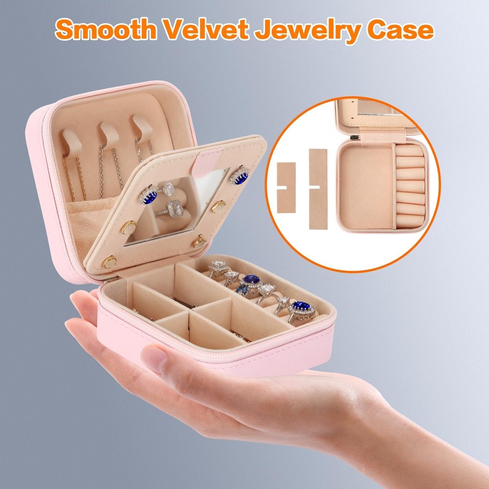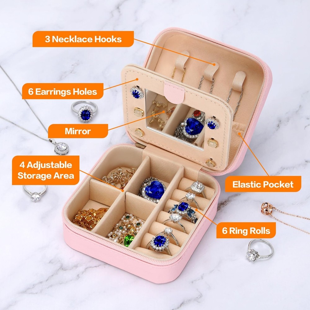 Compact Travel Jewelry Organizer with Mirror - Trendy Gift for Women & Teens