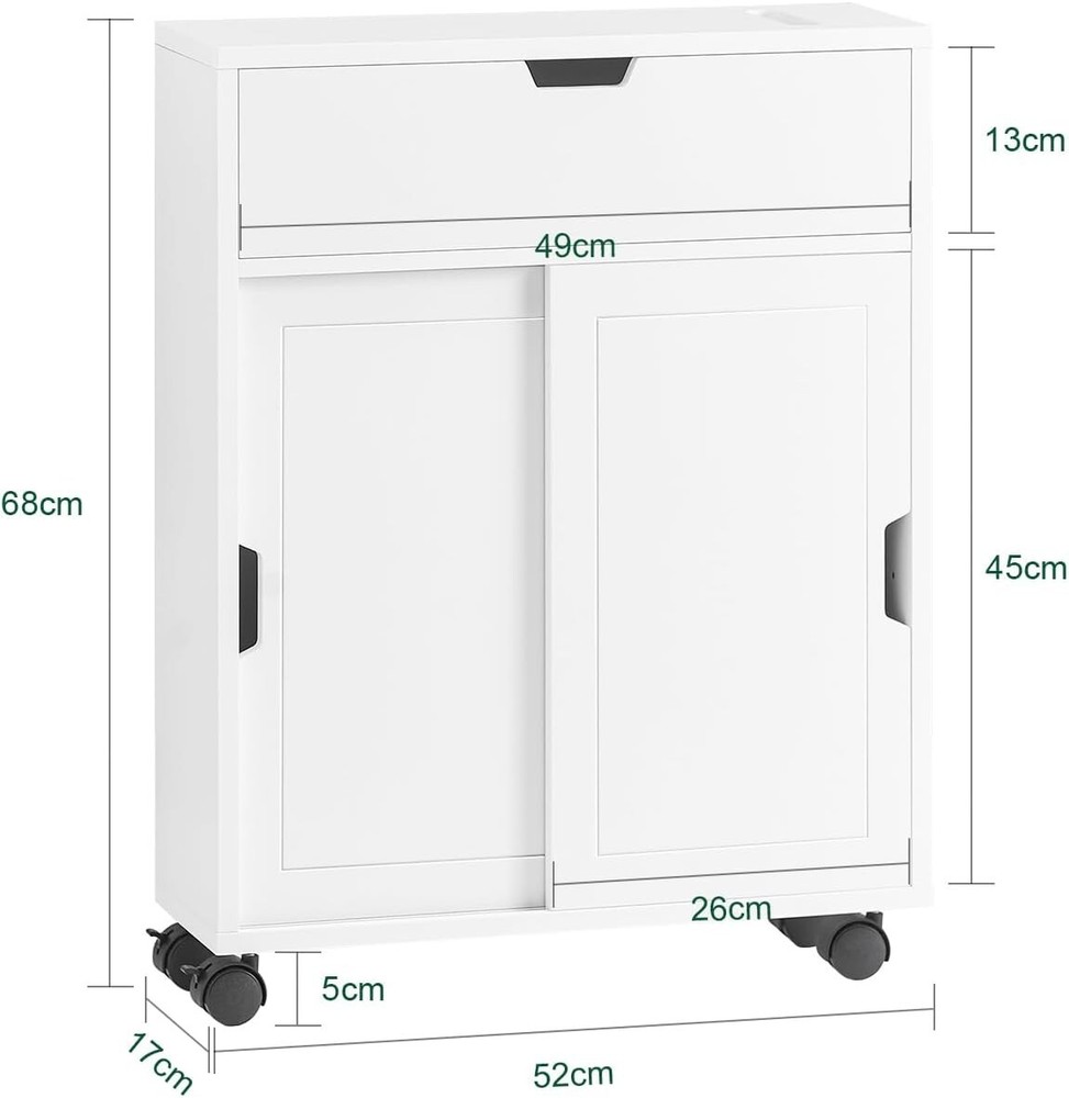 Compact Rolling Toilet Paper Storage Cabinet with 6 Compartments - White Finish ‹ › ‹ › ‹ › ‹ › ‹ › ‹ › ‹ › ‹ › ‹ › ‹ › ‹ › ‹ › Compact Rolling Toilet Paper Storage Cabinet Elevate your bathroom's functionality with our elegantly designed Compact Rolling Toilet Paper Storage Cabinet. Finished in a pristine white, this sophisticated storage solution harmonizes with any decor while keeping your essential supplies organized. Features: Two spacious square slots designed specifically for toilet paper rolls, including mega rolls. Three main storage spaces to accommodate all your bathroom essentials. A dedicated compartment with a discreet door for storing your toilet brush. Dimensions: W27.6 x D7.9 x H27.6 inch; Weight: 28.2 lbs; Load Capacity: 66 lbs. Crafted from high-quality MDF with a smooth, easy-to-clean painted white finish. Comes with detailed assembly instructions, numbered parts, and precision-drilled holes for hassle-free setup. Benefits: Maximizes your bathroom's space while offering stylish and functional storage. Quick access to toilet paper and bathroom accessories eliminates clutter. Sturdy construction ensures long-lasting use, supported by quality craftsmanship. Transitional design complements any bathroom aesthetic effortlessly. Why choose our Compact Rolling Toilet Paper Storage Cabinet? This expertly designed cabinet is not just a storage solution, but a transformative piece that turns bathroom chaos into serene organization. With compartments specifically for toilet paper and additional storage for cleaners and brushes, it caters to every aspect of your cleaning routine. Invest in smart storage that not only elevates your bathroom but also supports your everyday life. Make clutter a thing of the past—order your Compact Rolling Toilet Paper Storage Cabinet today! Shipping Free & Fast Shipping - We offer free shipping to most of the USA with a normal delivery time of 3-7 days. However, due to the current situation, additional delivery time (up to 3 weeks) may be required for some items. Alternative Carriers - We may use alternative carriers (e.g. USPS, FedEx, UPS, etc.) to ensure your package arrives safely and on time. Due to the use of multiple carriers, we are unable to provide a tracking number automatically. Handling Time - Orders are processed and shipped within 1-2 business days of receiving cleared payment. Shipping Restrictions - Shipping to Alaska, Hawaii, Puerto Rico, Guam, and other US territories may incur shipping charges or delivery restrictions. Please contact us before ordering, or your order can be refunded/cancelled. State Restrictions - There may be restrictions based on your state of purchase. For example, certain items may not be shipped to California due to state regulations. Contact for Tracking Updates - If you require tracking updates or have any concerns about the delivery of your order, please feel free to contact us, and we will be happy to assist you. Return 30-Day Hassle-Free Returns - We want you to be completely satisfied with your purchase. If you are not, you can return the item within 30 days of receiving it for a full refund or exchange. Easy Return Process - To start a return, simply contact us and we will provide you with a prepaid return shipping label and detailed instructions. Restocking Fee - There are no restocking fees for returns. However, the buyer is responsible for return shipping costs if the return is not due to a seller's error. Refund Processing Time - Refunds will be processed within 5 business days of receiving the returned item in its original condition. Payment We accept all major credit cards, PayPal, and Apple Pay for your convenience. Your payment information is secure and encrypted to ensure a safe and seamless transaction. Please complete your payment within 3 days of purchase to avoid any delays in shipping. Feedback Your feedback is extremely important to us. We strive to provide the best products and customer service possible. If you are satisfied with your purchase, please take a moment to leave us a positive review. If you have any concerns or issues with your order, please contact us before leaving negative feedback. We are committed to resolving any problems and ensuring your satisfaction. Contact Us If you have any questions or concerns, please feel free to reach out to our customer support team. You can contact us through the eBay messaging system. We are available Monday to Friday, 9:00 am to 5:00 pm EST, and we will do our best to respond to your inquiry within 24 hours. Buy it now and enjoy a pleasant shopping experience! UPC: Not Set Item Weight: 28.2 lbs Unit Quantity: 1 Mounting: Free Standing Material: MDF/Chipboard,Engineered Wood Department: Adults Room: Bathroom Features: On Wheels Set Includes: Doors,Drawers,Shelves Brand: Unbranded Type: Cabinet Item Height: Bathroom Storage Cabinet Item Length: Bathroom Storage Cabinet Item Width: Bathroom Storage Cabinet Color: White Door Style: Sliding Number of Shelves: 2 Item Depth: 7.9 in Model: Not Set MPN: Not Set Style: Modern Number of Doors: 2 Number of Drawers: None Number of Items in Set: 1 Finish: Painted Country/Region of Manufacture: Not Set Unit Type: lb Assembly Required: Not Set