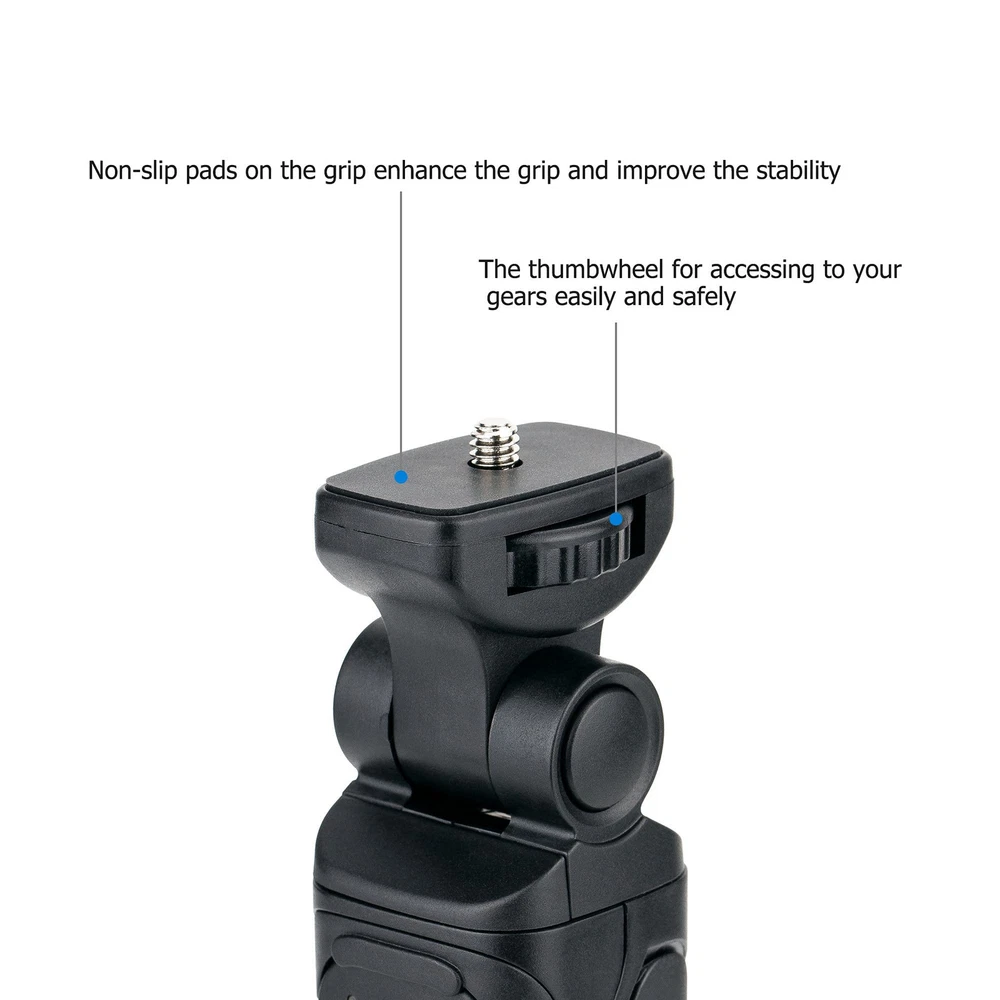 Compatible with Sony A7CR, A7CII, A6700,ZV-E10 II , ZV-1 II, ZV-E1, ZV-1F, FX30, ZV-E10, ZV-1, A1, A7C, A9, A9II, A9III, A7R V IV III II, A7S III II, A7 III II, A6600, A6500,A6400,A6300,A6100,A6000 and RX100 Series camera Compare with Sony GP-VPT2BT,this built in remote is removable, replaces Sony RMT-P1BT remote commander, which allows you to wirelessly release your camera's shutter and start/stop video via Bluetooth within a 32 ft/10m operating range at any direction Specially designed for Vlog shooting, live streaming and selfie, it can also be used as a desktop tripod for shooting. The integrated head can be tilted 180 degrees and rotated 360 degrees, which is convenient for you to shoot from various angles Non-slip pads on the grip enhance the grip and improve the stability,Anti shake during shooting