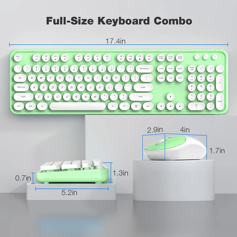 【Unique Keyboard and Mouse Combo】 Stylish multi-color style design, brighten up your device and your desk. Let you add a touch of fun to your dull and boring work, relieve work pressure. 【2.4G Wireless Plug and Play】 Simply connect both your portable keyboard and mouse with one USB receiver without any software, and then enjoy a strong and reliable wireless connection virtually no delays or dropouts. 【Upgrading Technology】The keycaps are made of ABS environment-friendly plastic characterized by ergonomic design and a comfortable feel. And there is a foldable stand on the back of the keyboard to reduce hand fatigue, hence enhancing your typing experience. 【Wide Compatibility】The keyboard and mouse combo include a full-size keyboard and a high-sensitivity mouse. Suit for Windows 7,8,10, XP/Vista. Work perfectly with PC, Laptop, Smart TV, and more. Not fully compatible with the Apple system. 【Auto power saving】The keyboard and mouse will go into sleep mode for saving batteries after being idle for 5 minutes. Press any key to wake up immediately. If there are any problems, we are ready to help you at any time.