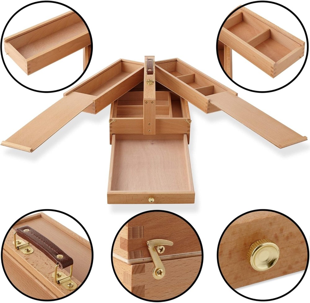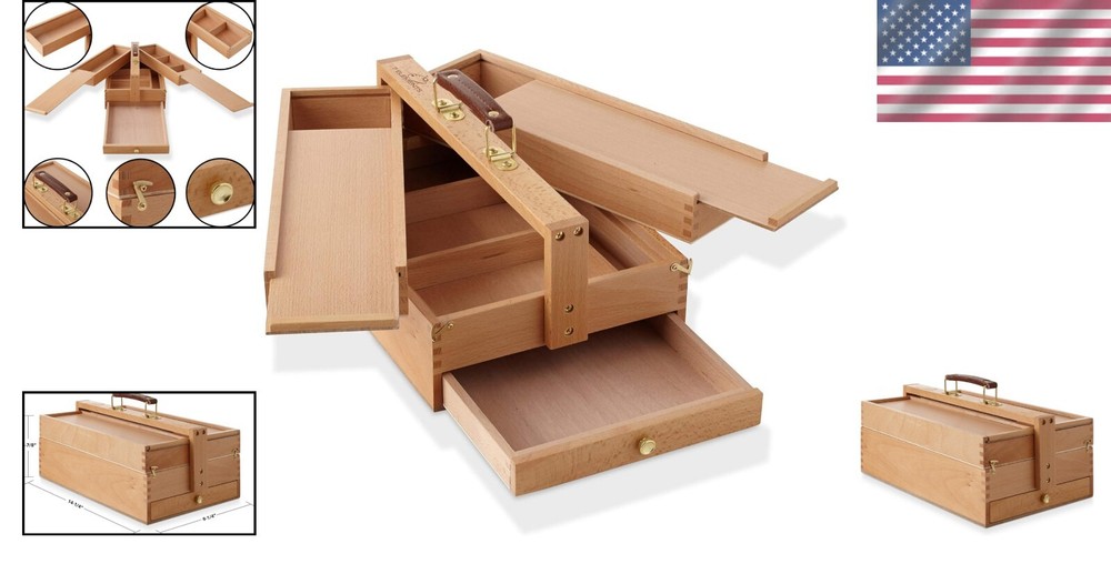 Compact Wooden Artist Tool Box with Removable Drawer - Ideal for Creatives ‹ › ‹ › ‹ › ‹ › ‹ › ‹ › ‹ › Compact Wooden Artist Tool Box with Removable Drawer Ideal for Creatives Classic Design This elegant, multi-level version of a traditional artist's tool box features convenient compartments, making it an essential accessory for creative enthusiasts of all ages who desire a stylish and functional way to store and transport their essential art supplies. Stay Organized Three levels of thoughtfully designed storage. Two top-level storage trays with multiple compartments slide out to reveal additional space in the compartment tray below. The main compartment offers ample room for larger supplies. Removable Drawer A full-size removable storage drawer below holds paints, pastels, brushes, markers, pens, and other supplies while ensuring easy access. Interior dimensions: 8" x 12". Sturdy Construction Crafted from high-quality solid Beechwood for durability and a classic aesthetic. Lightweight yet sturdy with metal clasps and solid box joints designed to keep your art supplies secure. Compact and Portable Equipped with a elegant leather carry handle, this wooden tool box is the perfect size to protect and transport your supplies to and from home, school, and the studio. Measurements: 14-1/4" Wide x 9-1/4" Deep x 5-7/8" Tall. Why Choose Our Compact Wooden Artist Tool Box? Whether you're a budding artist or a seasoned professional, this exquisite tool box elevates your creative experience by marrying functionality with refined design. Keep your art supplies organized in a stylish and practical manner, allowing you to focus on what truly matters: your art. Don't miss out on enhancing your creative journey, order your Compact Wooden Artist Tool Box today! Shipping Free & Fast Shipping - We offer free shipping to most of the USA with a normal delivery time of 3-7 days. However, due to the current situation, additional delivery time (up to 3 weeks) may be required for some items. Alternative Carriers - We may use alternative carriers (e.g. USPS, FedEx, UPS, etc.) to ensure your package arrives safely and on time. Due to the use of multiple carriers, we are unable to provide a tracking number automatically. Handling Time - Orders are processed and shipped within 1-2 business days of receiving cleared payment. Shipping Restrictions - Shipping to Alaska, Hawaii, Puerto Rico, Guam, and other US territories may incur shipping charges or delivery restrictions. Please contact us before ordering, or your order can be refunded/cancelled. State Restrictions - There may be restrictions based on your state of purchase. For example, certain items may not be shipped to California due to state regulations. Contact for Tracking Updates - If you require tracking updates or have any concerns about the delivery of your order, please feel free to contact us, and we will be happy to assist you. Return 30-Day Hassle-Free Returns - We want you to be completely satisfied with your purchase. If you are not, you can return the item within 30 days of receiving it for a full refund or exchange. Easy Return Process - To start a return, simply contact us and we will provide you with a prepaid return shipping label and detailed instructions. Restocking Fee - There are no restocking fees for returns. However, the buyer is responsible for return shipping costs if the return is not due to a seller's error. Refund Processing Time - Refunds will be processed within 5 business days of receiving the returned item in its original condition. Payment We accept all major credit cards, PayPal, and Apple Pay for your convenience. Your payment information is secure and encrypted to ensure a safe and seamless transaction. Please complete your payment within 3 days of purchase to avoid any delays in shipping. Feedback Your feedback is extremely important to us. We strive to provide the best products and customer service possible. If you are satisfied with your purchase, please take a moment to leave us a positive review. If you have any concerns or issues with your order, please contact us before leaving negative feedback. We are committed to resolving any problems and ensuring your satisfaction. Contact Us If you have any questions or concerns, please feel free to reach out to our customer support team. You can contact us through the eBay messaging system. We are available Monday to Friday, 9:00 am to 5:00 pm EST, and we will do our best to respond to your inquiry within 24 hours. Buy it now and enjoy a pleasant shopping experience! UPC: Not Set Item Height: Not Set Item Width: Not Set Item Length: Not Set Item Diameter: 14.25 in Item Weight: 5.8 lb Unit Quantity: 1 Features: Adjustable,With Handle,Removable Drawer,Multiple Compartments,Portable,Sturdy Construction,Three Levels of Storage,Leather Carry Handle Brand: Unbranded Type: Tool Box Number of Items: 1 Material: Wood Number of Drawers: 1 Size: Medium Capacity: Mixed Supplies Model: Not Set MPN: Not Set Color: Natural Beechwood Finish: Natural Country/Region of Manufacture: Not Set Manufacturer Warranty: Not Set Unit Type: in