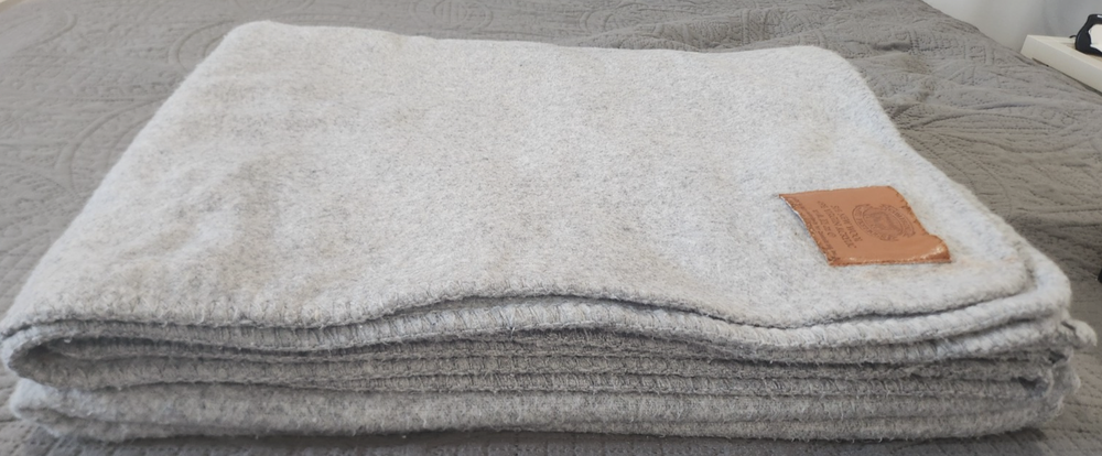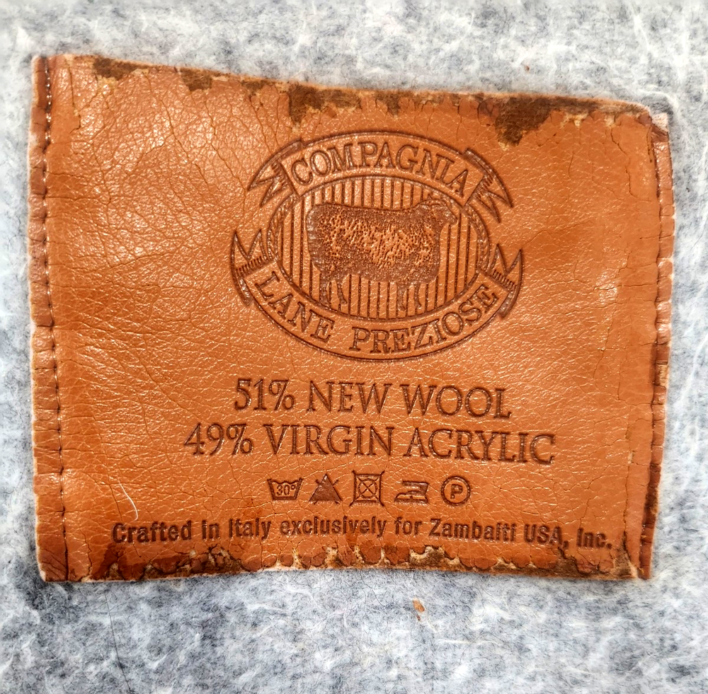 This is a luxurious Queen blanket by Compagnia Lane Preziose, crafted in Italy from 51% wool and 49% acrylic in a stylish gray color. With a warm and traditional design, this rectangular blanket is perfect for adding comfort and style to your bedroom. It is machine washable and easy to care for, making it a practical and cozy choice for the winter season. In very good condition.