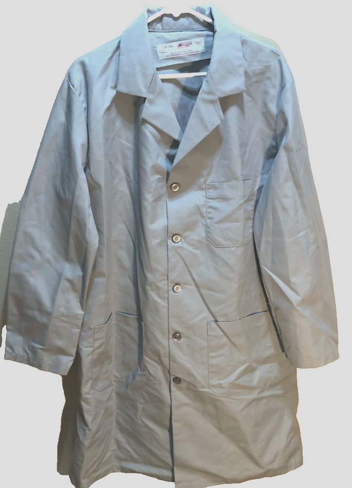 The Compaq Lab Long Coat Vintage 80s 90s Image Plus by Red Kap is a stylish and nostalgic piece of work clothing from the electronic industry. This unisex XL lab coat is made from a comfortable cotton blend material in a classic gray color. With a length of 41 inches, it provides ample coverage and protection for a variety of lab and work environments. Made in the United States, this coat combines retro style with practical functionality, making it a unique and eye-catching addition to anyone's wardrobe. Vintage 80s 90s Red Kap Image Plus Compaq Lab Coat *80% Polyester, 20% Cotton *Screen-printed *Color: Gray Size: Adult 44-Regular Measurements: *Armpit to Armpit: 24" *Shoulder to Hemline: 41" *Shoulder to Shoulder: 18.5" Condition: New without tags Old stock