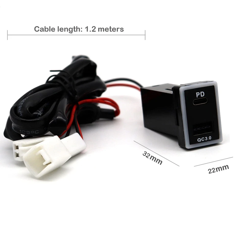 Compatible with Toyota PD Type C USB Power Socket, USB C & Quick Charge 3.0 Car Charger USB Adapter Port Socket Compatible with Toyota(32*20mm) quick charge 3.0: Charges devices up to 80% in just 35 minutes, 4 times faster than conventional car chargers. Backward compatible with QC 1.0 and 2.0 Technology. USB 3.0 and USB C outputs ensure the fastest charging speed for 2 smartphones, tablets, or QC compatible devices simultaneously, also charges non-Quick Charge devices at their normal speed. Universal compatibility: Compatible with all USB powered devices including Quick Charge 1.0, 2.0 and 3.0, ensuring that even non-Quick Charge devices get the fastest charge possible, such as smartphones and tablets. Operating voltage: 12V QC3.0 Output: 5V*3.2A Suitable models: (we recommend measuring the size of the mounting hole before purchase) Toyota corolla 2007-2017 corolla ex 2011-2014 Toyota levin 2014-2017 Toyota rav4 2009-2016 Toyota prado 2010-2016 Toyota corolla hyrbid 2016-2017 Toyotacorolla ex 2011-2014,toyota vios 2008-2016 Toyotaland cruiser 100 series 2003-2007 Toyota land cruiser 200 series 2008-2016 Toyota yaris L 2014-2016 Toyota alphard 2009-2015 Toyota prius 2012-2016 Toyota highlander 2008-2017 Toyota tundra 2009-2013 : offers consumer accessory solutions across many different categories such as Tablet and phone cases, Keyboards, Batteries, Headphones, Wallets, Cufflinks, Money clips, Collar stays, and more. When purchasing a product you can expect quality in both the material and performance of the items backed by amazing customer service and support. Brand of "" was regiestered by U.S TradeMark Office. This QC3.0 port with Type C car socket is only suitable for holes 32 * 20mm. Connectors: Type C + QC 3.0 USB C car charger socket is manufactured to fit in the OEM space Available in your toyota car or truck, like corolla 2007-2017,levin 2014-2017,rav4 2009-2016,prado 2010-2016,corolla hyrbid 2016-2017,corolla ex 2011-2014,toyota vios 2008-2016,land cruiser 100 series 2003-2007 and more. Intelligent Charging - Quick charge 3.0 USB port, built-in smart charging IC, will auto detects your devices and charges them at optimal speed, better charging performance; QC 3.0 Backward-compatible with QC 2.0, 1.0, provides standard charging for non-Quick Charge devices. Safety Protecion - Over-heated, over-current, over-charging protection, charging will be automatically stop when battery is full; 3.92ft wiring and fuse included; easy to use and install. Don't worry about the problems once you order the product. If have any problem, pls don't hesitate to contact us.