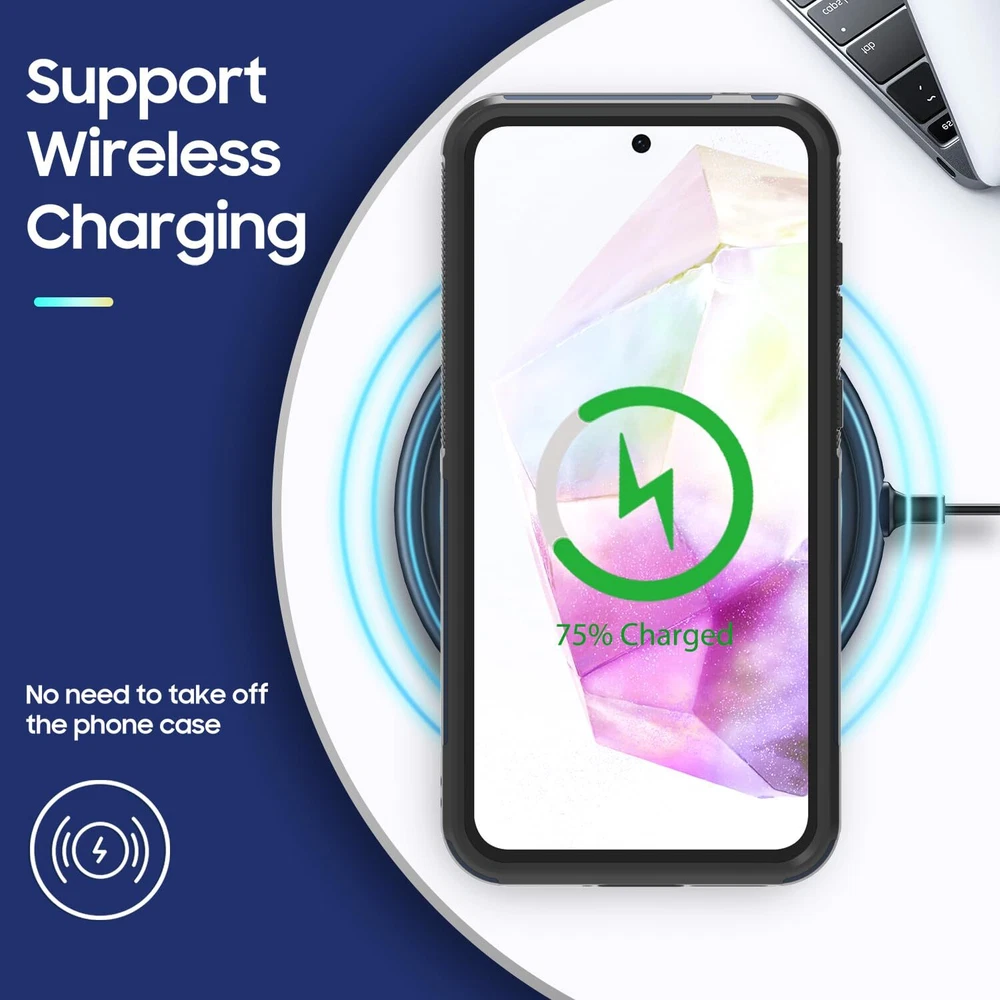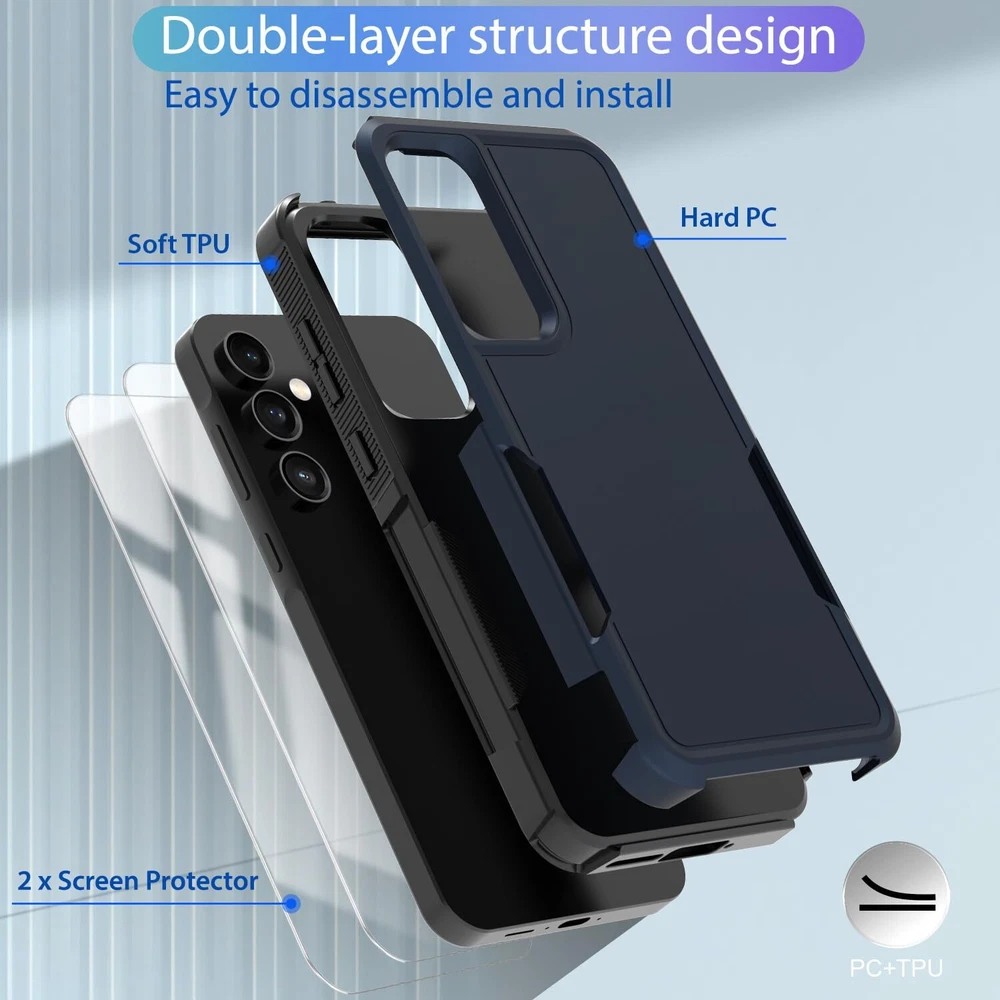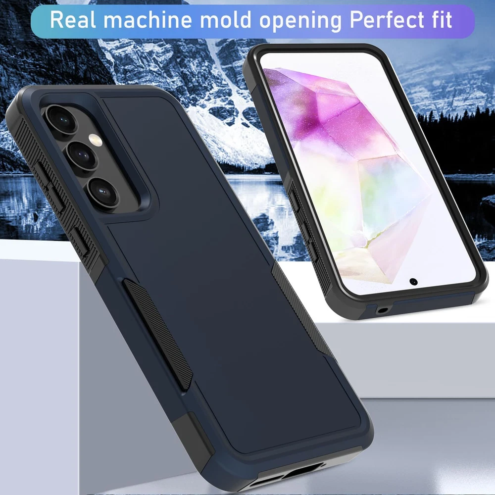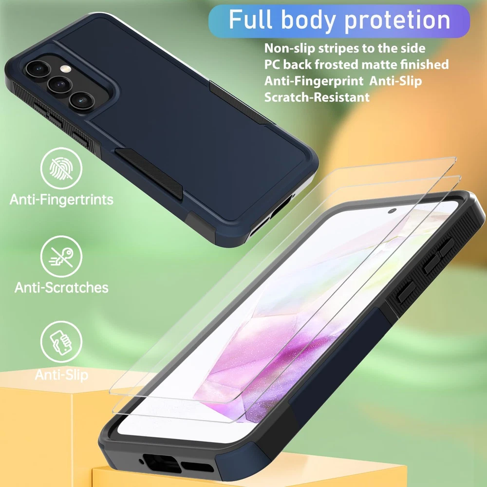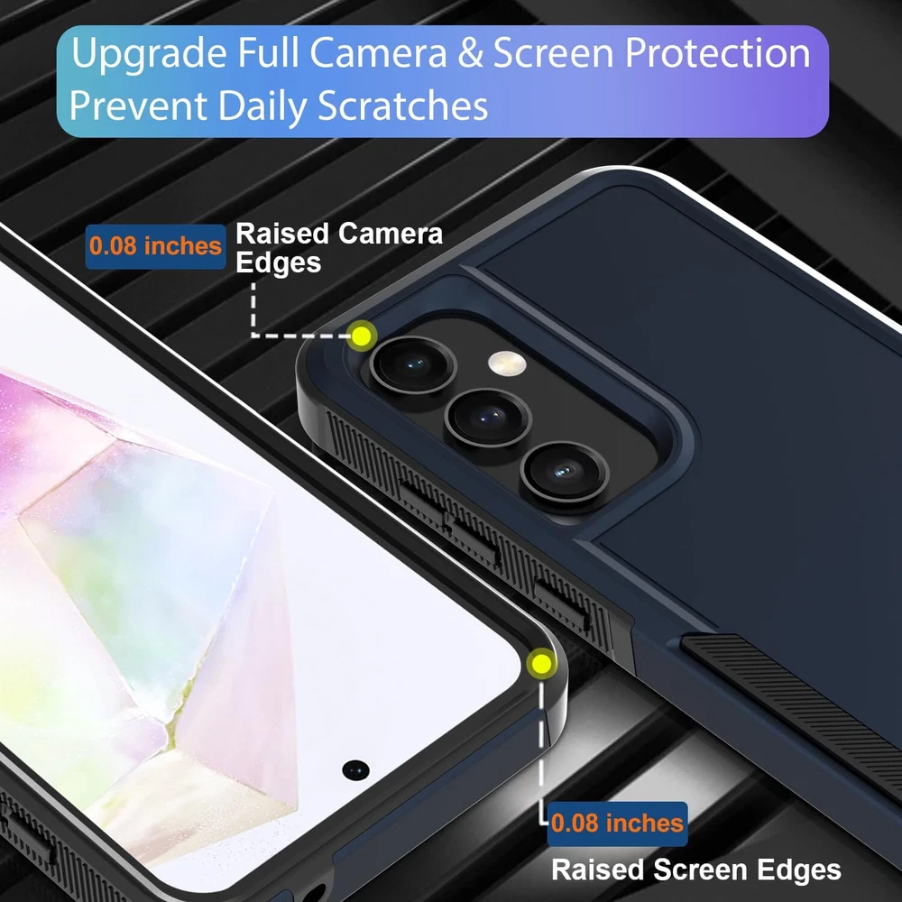💎Perfectly Fit Samsung Galaxy A55 5G / Samsung Galaxy A35 5G Phone Case, Dual Layer Protective Heavy Duty Cell Phone Cover Shockproof Rugged with Non Slip Frosted Back Bumper Tough. 💎This two-in-one combination of military grade tough protection Samsung A55 5G / Samsung A35 5G Case, Hard PC + Solid inner polycarbonate shell soft cushioning rubber outer Galaxy A55 5G / Galaxy A35 5G Protection cover, Four-corner unique shock absorption design, more comprehensive protection of the fragile parts for the smartphone. 💎Raised lips keeps camera lifted to prevent your lens from shock,collision and scratch. 💎The frosted surface is made of environment friendly PC material that gives you a comfortable grip.Soft to touch,and resistant of fingerprints,oil and sweat,making it hard to slide out of your hand. 💎Precise Cutout, easy access to touchscreen, camera, buttons, and ports, dual-laye thin profile slips in and out of pockets, make your Galaxy A55/A35 cool and attractive. Wireless-charging compatible case, faster and easier charging. 💎【Compatible Model】Only compatible with Samsung Galaxy A55 5G Case / Samsung Galaxy A35 5G Case / Samsung A55 5G Case / Samsung A35 5G Case. Package: 1 x phone case, 2 x free Soft HD Screen Protector. [⚠️ Please verify that your phone is the Samsung Galaxy A55 5G/Samsung Galaxy A35 5G in order to ensure this fits your device. In your phone's "settings" app select "system", and then "about phone" to find your phone name.] 💎【Military Grade Drop Protection】Flexible 2-Layer structure (the flexible rubber inner cover and hard PC back cover) provides 360 degree full body rugged protection. 4 corners equipped with advanced impact resistant anti-collision angle strongly protect the protruding mobile phone from falling, collision and injuries. Especially when working outdoors, doing sports, camping, traveling etc. 💎【Extra Protection for the Screen and Camera】 2.0mm raised screen edge and 2.0mm raised camera edge provide extra protection for your phone screen and camera. Horizontal area, the device touchscreen and camera will not make contact with that surface, prevent daily scratches. 💎【Anti-slip & Comfortable Grip】The new super cool lightweight dual layer design provides a cozy grip of the phone, slip easily in and out of pockets, adds non-slip stripes to the side of the case, making it hard to slide out of your hand. Scratch resistant and anti slip premium frosted material solved the problems of leaving fingerprints, oil, sweat and marks. 💎【Accessories and Warranty】We provide friendly customer service, if you have any problems during use: not satisfied with the product, package damage, etc., please contact us via Amazon email. We are committed to providing you with the best products and services.