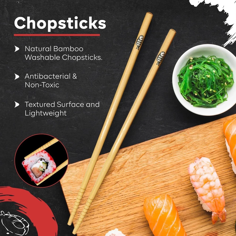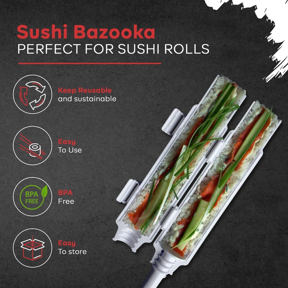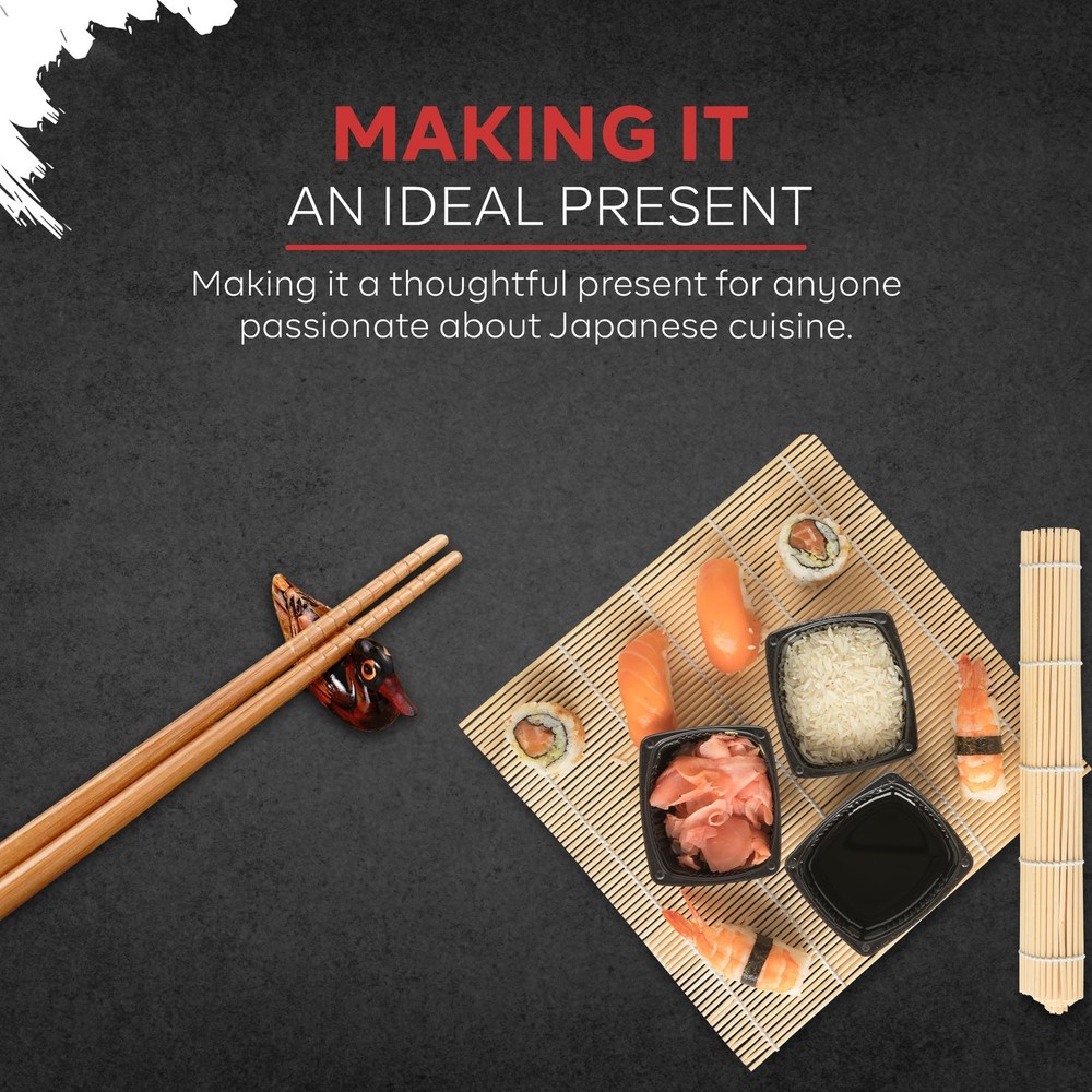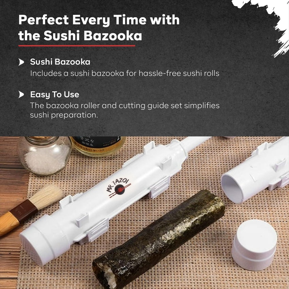 ๐—•๐—ฎ๐˜‡๐—ผ๐—ผ๐—ธ๐—ฎ ๐—ฅ๐—ผ๐—น๐—น๐—ฒ๐—ฟ: The bazooka Roller helps you get started on your journey to making perfect sushi rolls, built your confident here, then level up to using only the bamboo mat. ๐—–๐˜‚๐˜๐˜๐—ถ๐—ป๐—ด ๐—š๐˜‚๐—ถ๐—ฑ๐—ฒ: The Sushi Rolls cutting guide provides you with a template to making precision cut rolls, best used for rolls with seaweed on the outside. ๐—ฏ๐—ฎ๐—บ๐—ฏ๐—ผ๐—ผ ๐—บ๐—ฎ๐˜: The bamboo mat is an essential tool in making sushi rolls of all kinds. ๐—–๐—ต๐—ผ๐—ฝ๐—ฆ๐˜๐—ถ๐—ฐ๐—ธ๐˜€: Elegant and durable, this set of (7) chopsticks is perfect for enjoying sushi and other Asian cuisines. Crafted from high-quality wood with a smooth finish, these chopsticks offer a comfortable grip and are easy to clean ๐Ÿฃ ๐„๐Ÿ๐Ÿ๐จ๐ซ๐ญ๐ฅ๐ž๐ฌ๐ฌ ๐’๐ฎ๐ฌ๐ก๐ข ๐Œ๐š๐ค๐ข๐ง๐  ๐š๐ญ ๐‡๐จ๐ฆ๐ž: The sushi making kit is designed for beginners and home chefs alike, simplifying the art of sushi creation. With essentials like a sushi bazooka roller, bamboo mats, and more, you can prepare delicious, restaurant-quality sushi rolls and nigiri quickly and with ease. ๐Ÿฅข ๐—–๐—ต๐—ผ๐—ฝ๐˜€๐˜๐—ถ๐—ฐ๐—ธ๐˜€ & ๐—ฅ๐—ผ๐—น๐—น๐—ถ๐—ป๐—ด ๐— ๐—ฎ๐˜๐˜€: Our kit includes two premium bamboo sushi mats for perfect rolls, along with a set of seven pairs of reusable chopsticks and a chopstick holder. These high-quality accessories provide a realistic and enjoyable sushi-making experience to impress family and friends. ๐ŸŽฏ ๐’๐ฎ๐ฌ๐ก๐ข ๐๐š๐ณ๐จ๐จ๐ค๐š & ๐‚๐ฎ๐ญ๐ญ๐ข๐ง๐  ๐†๐ฎ๐ข๐๐ž ๐Ÿ๐จ๐ซ ๐๐ซ๐ž๐œ๐ข๐ฌ๐ž ๐‘๐จ๐ฅ๐ฅ๐ฌ: This sushi roller kit features a bazooka sushi roller for mess-free, consistent sushi rolls and a cutting guide for even slices every time. Ideal for beginners, these tools ensure your sushi looks as good as it tastes, with no complicated hand-rolling required. ๐ŸŽ๐—ฃ๐—ฒ๐—ฟ๐—ณ๐—ฒ๐—ฐ๐˜ ๐—š๐—ถ๐—ณ๐˜ ๐—ณ๐—ผ๐—ฟ ๐—ฆ๐˜‚๐˜€๐—ต๐—ถ ๐—˜๐—ป๐˜๐—ต๐˜‚๐˜€๐—ถ๐—ฎ๐˜€๐˜๐˜€: This sushi kit for beginners makes a thoughtful gift for anyone who enjoys Japanese cuisine or wants to try their hand at making sushi at home. Complete with all essential tools, it's the perfect present for sushi enthusiasts or aspiring chefs. ๐Ÿงฝ ๐——๐˜‚๐—ฟ๐—ฎ๐—ฏ๐—น๐—ฒ ๐—ฎ๐—ป๐—ฑ ๐—˜๐—ฎ๐˜€๐˜† ๐˜๐—ผ ๐—–๐—น๐—ฒ๐—ฎ๐—ป: Constructed with high-quality, food-safe materials, this sushi maker kit is built to last. The bamboo sushi mat and chopsticks are easy to clean and maintain, allowing you to enjoy sushi-making without hassle, again and again. ๐Ÿ† ๐—”๐—ฏ๐—ผ๐˜‚๐˜ ๐—ข๐˜‚๐—ฟ ๐—•๐—ฟ๐—ฎ๐—ป๐—ฑ: Mr. Tazoi was founded in 2010 with the goal of providing high-quality kitchenware products at affordable prices. Over the years, we have grown from a small family-owned business to a well-respected brand in the industry, with customers all over the world.