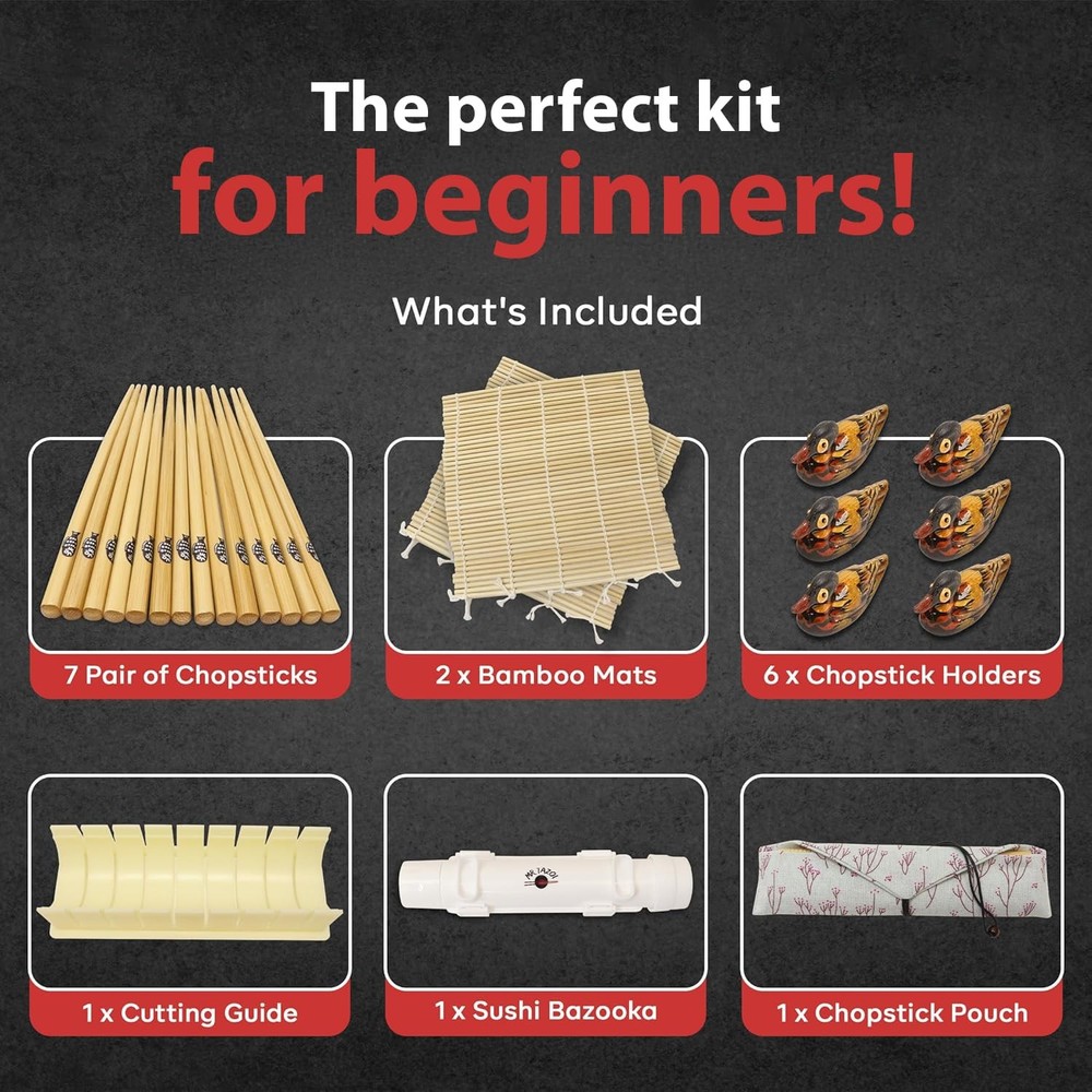 Complete 18-Piece Sushi Making Kit for Beginners with Bamboo Mat