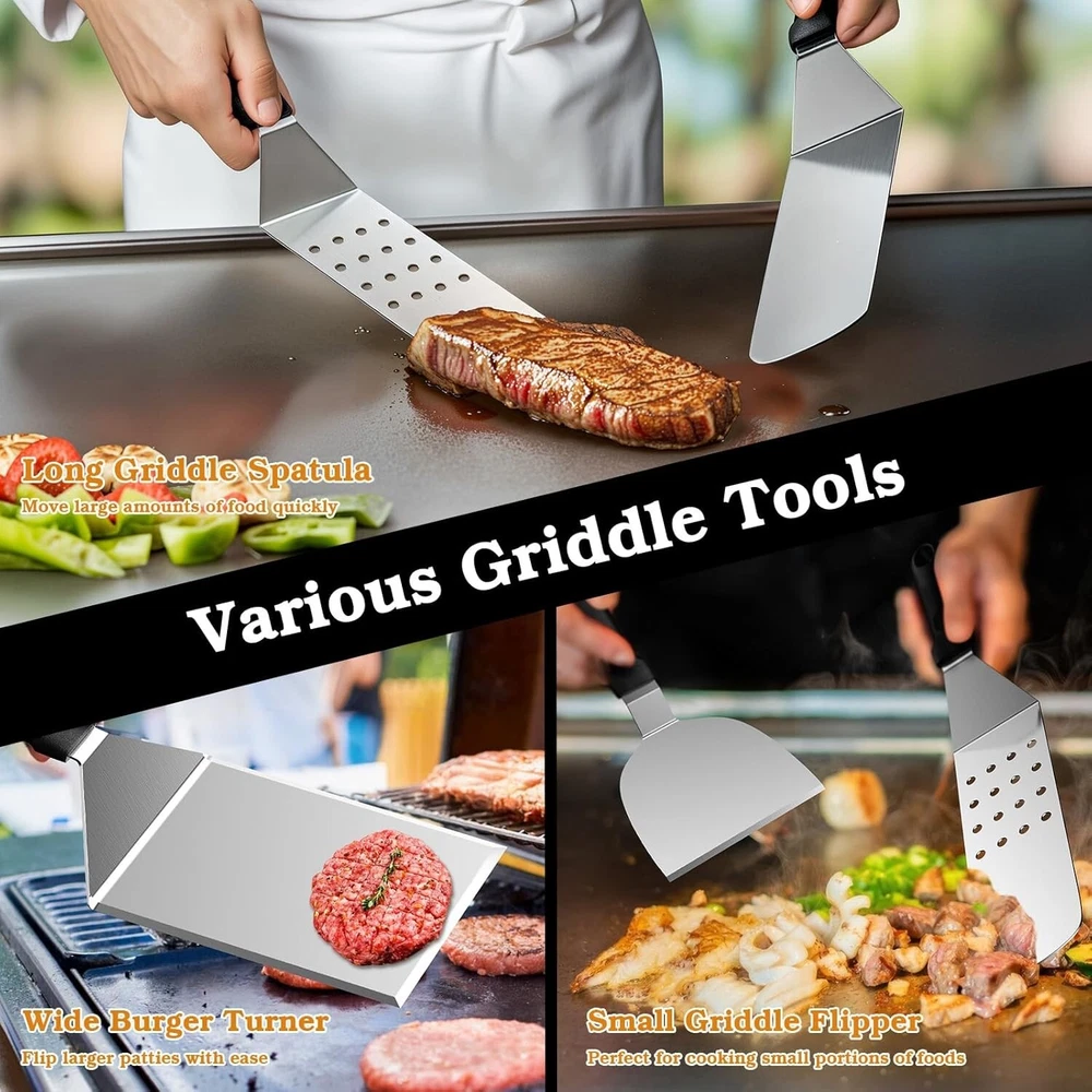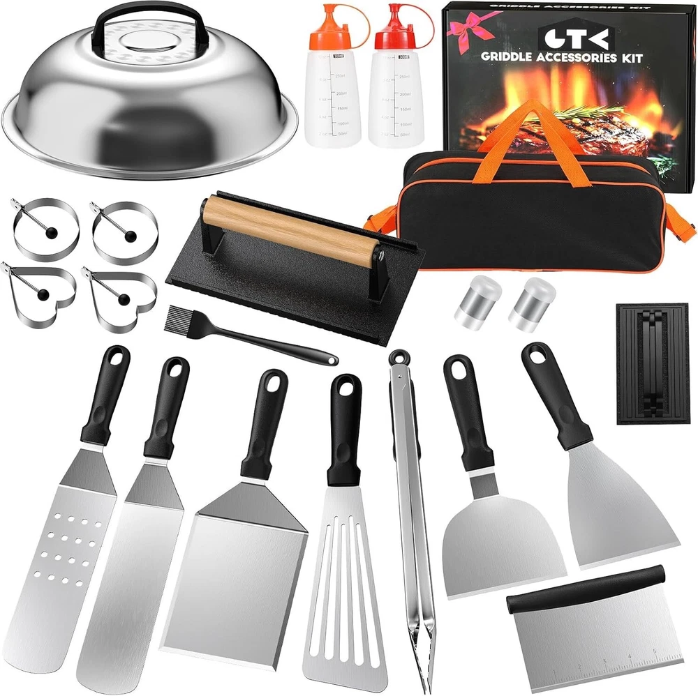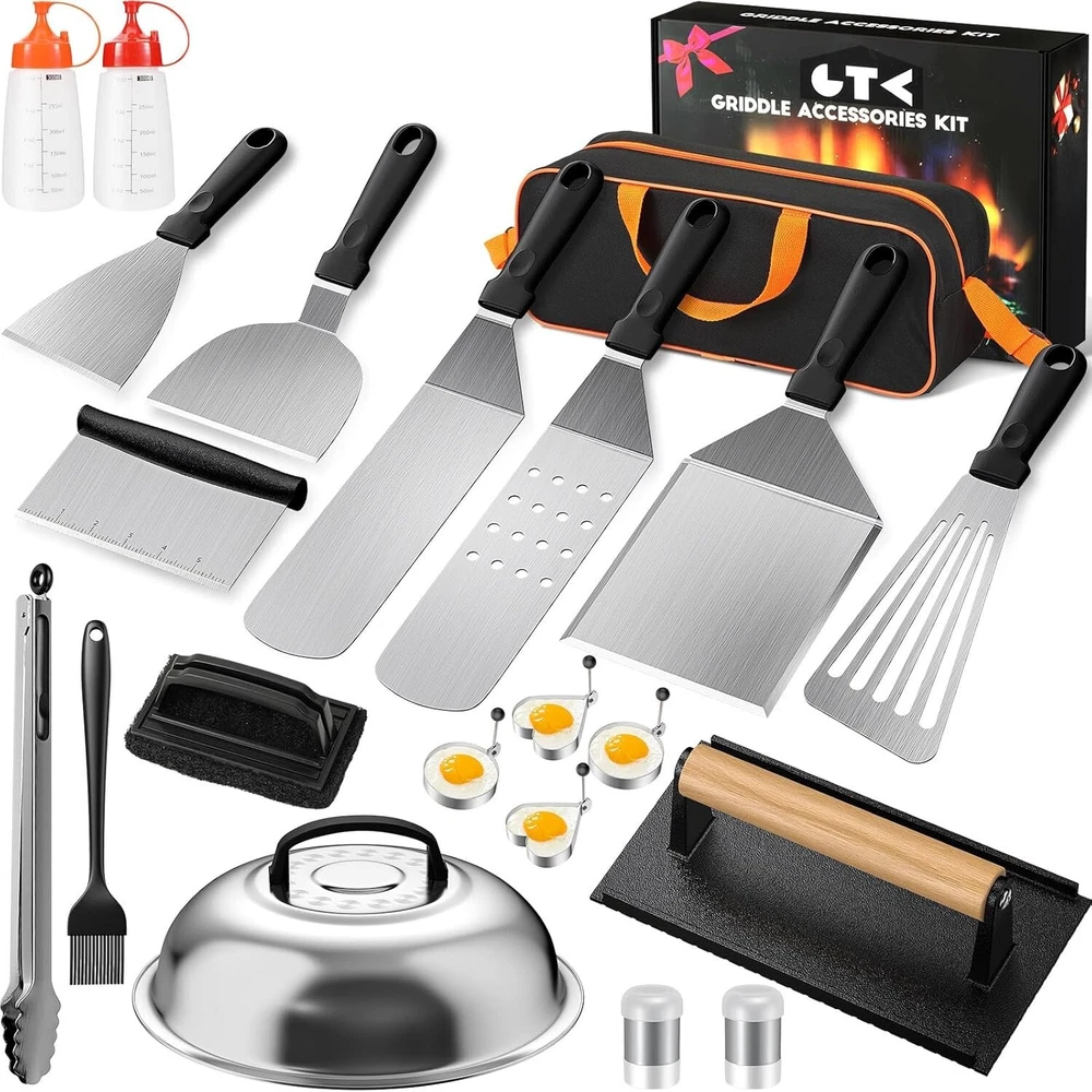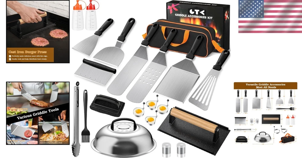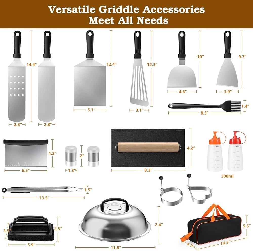 Complete 22-Piece BBQ Grilling Accessories Kit – Compatible with All Griddles ‹ › ‹ › ‹ › ‹ › ‹ › ‹ › ‹ › ‹ › ‹ › ‹ › Complete 22-Piece BBQ Grilling Accessories Kit The Ultimate Set Compatible with All Griddles Includes: 1 Long Griddle Spatula 1 Slotted Spatula 1 Large Burger Turner 1 Burger Flipper 1 Slant Edge Scraper 1 Cast Iron Griddle Press 1 Fish Frying Spatula 1 Tongs 2 Squeeze Bottles 1 Chopper 4 Egg Rings 1 Cleaning Brush 2 Spice Shakers 1 Sauce Brush 1 Basting Cover 1 Storage Bag 1 Gift Box Key Features: Premium Quality Stainless Steel: Crafted from food-grade stainless steel, ensuring durability and rust-resistance. Heavy-Duty Construction: Designed to prevent bending or cracking, perfect for all your grilling needs. Easy Cleaning & Storage: Dishwasher safe and comes with a storage bag for easy transport and organization. Versatile Usage: Ideal for flipping burgers, pancakes, vegetables, and more; perfect for indoor and outdoor cooking. Benefits: Everything you need to grill like a pro. Perfect for outdoor picnics, camping, and backyard BBQs. Enhances your cooking skills with the included essential tools. Great gift for any cooking or BBQ enthusiast. Supports all types of griddles, including Blackstone and camp chef models. Why Choose Our BBQ Grilling Accessories Kit? This Complete 22-Piece BBQ Grilling Accessories Kit transforms your cooking experience into a culinary masterpiece. With tools designed for the connoisseur, you can elevate your BBQ game and serve delicious meals with ease. Each tool is meticulously crafted from premium stainless steel to ensure longevity and performance. Perfect for any occasion, whether it's a family gathering or a festive celebration. Make your cooking dreams a reality and gift your loved ones with the ultimate BBQ experience - Order your 22-Piece Grilling Accessories Kit today and enjoy the art of grilling! Shipping Free & Fast Shipping - We offer free shipping to most of the USA with a normal delivery time of 3-7 days. However, due to the current situation, additional delivery time (up to 3 weeks) may be required for some items. Alternative Carriers - We may use alternative carriers (e.g. USPS, FedEx, UPS, etc.) to ensure your package arrives safely and on time. Due to the use of multiple carriers, we are unable to provide a tracking number automatically. Handling Time - Orders are processed and shipped within 1-2 business days of receiving cleared payment. Shipping Restrictions - Shipping to Alaska, Hawaii, Puerto Rico, Guam, and other US territories may incur shipping charges or delivery restrictions. Please contact us before ordering, or your order can be refunded/cancelled. State Restrictions - There may be restrictions based on your state of purchase. For example, certain items may not be shipped to California due to state regulations. Contact for Tracking Updates - If you require tracking updates or have any concerns about the delivery of your order, please feel free to contact us, and we will be happy to assist you. Return 30-Day Hassle-Free Returns - We want you to be completely satisfied with your purchase. If you are not, you can return the item within 30 days of receiving it for a full refund or exchange. Easy Return Process - To start a return, simply contact us and we will provide you with a prepaid return shipping label and detailed instructions. Restocking Fee - There are no restocking fees for returns. However, the buyer is responsible for return shipping costs if the return is not due to a seller's error. Refund Processing Time - Refunds will be processed within 5 business days of receiving the returned item in its original condition. Payment We accept all major credit cards, PayPal, and Apple Pay for your convenience. Your payment information is secure and encrypted to ensure a safe and seamless transaction. Please complete your payment within 3 days of purchase to avoid any delays in shipping. Feedback Your feedback is extremely important to us. We strive to provide the best products and customer service possible. If you are satisfied with your purchase, please take a moment to leave us a positive review. If you have any concerns or issues with your order, please contact us before leaving negative feedback. We are committed to resolving any problems and ensuring your satisfaction. Contact Us If you have any questions or concerns, please feel free to reach out to our customer support team. You can contact us through the eBay messaging system. We are available Monday to Friday, 9:00 am to 5:00 pm EST, and we will do our best to respond to your inquiry within 24 hours. Buy it now and enjoy a pleasant shopping experience! UPC: Not Set Unit Quantity: 5.58 lb Set Includes: Grill Set,long griddle spatula,slotted spatula,large burger turner,burger flipper,slant edge scraper,cast iron griddle press,fish frying spatula,tongs,squeeze bottles,chopper,egg rings,cleaning brush,spice shakers,sauce brush,basting cover,storage bag,gift box Features: Dishwasher Safe,Easy Clean,Rust Resistant,Heavy Duty,Durable,Long Lasting,Portable,Organized Storage Type: BBQ Tool Set Brand: Unbranded Number in Pack: 22 Color: Silver Handle Material: Stainless Steel Item Weight: 5.58 lb Size: Medium Head Material: Stainless Steel Finish: Polished Country/Region of Manufacture: Not Set Item Height: Not Set Item Width: Not Set Model: Not Set Year Manufactured: Not Set Number of Items in Set: Twenty-Two-Piece Style: Modern MPN: Not Set Manufacturer Warranty: Not Set Unit Type: lb Personalize: Not Set