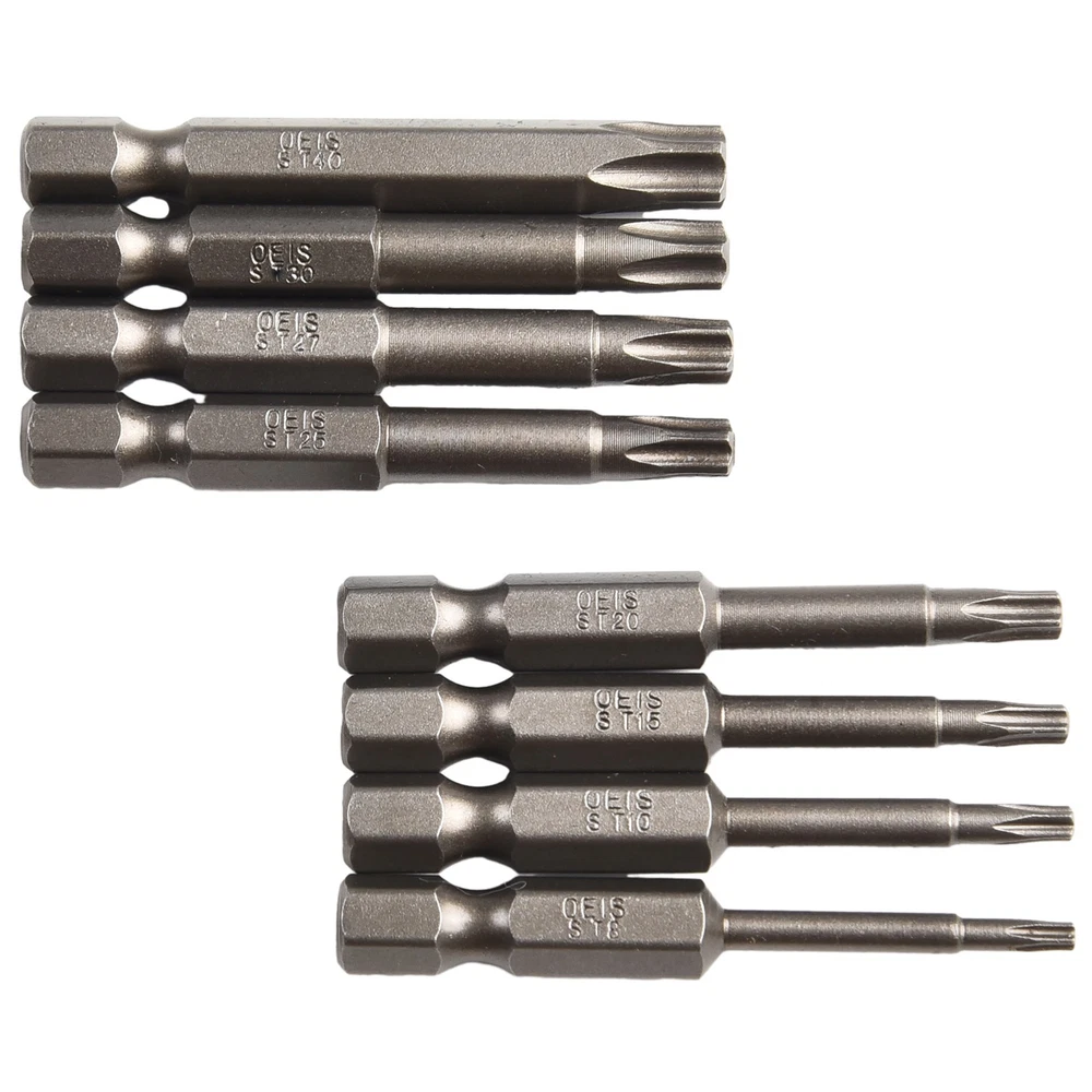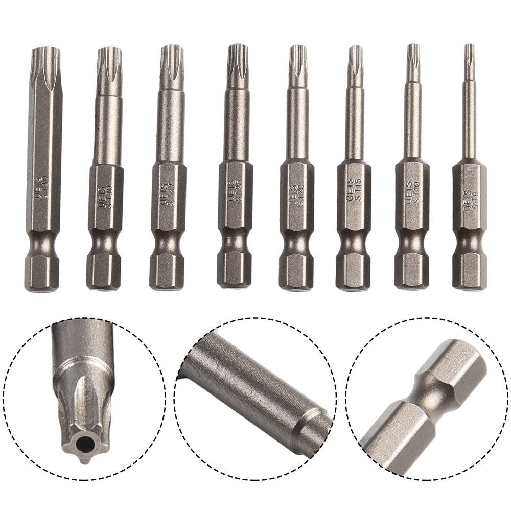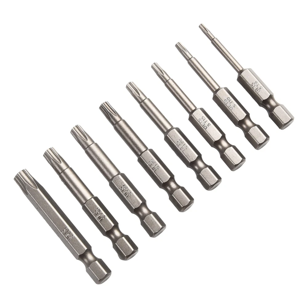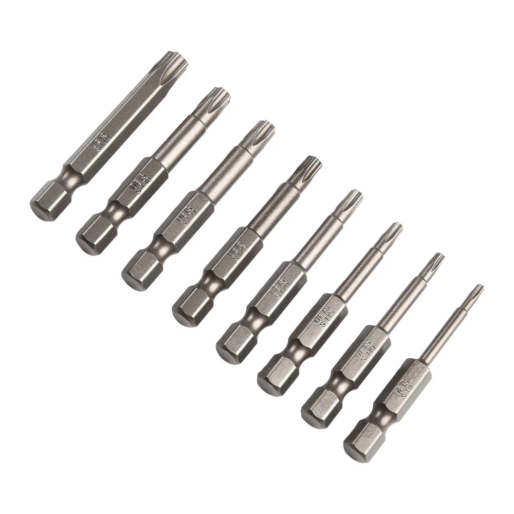 Complete 50mm For Torx Bit Set Including Sizes T8 to T40 for Power Tools DESCRIPTION Features: *High-Quality Material: Made of tough,-resistant material with extremely high abrasion resistance, durability and longevity. *Effortless Screwdriving: With the right screwdriver bar, screws can be easily unscrewed with minimal effort. The bit securely locks onto each edge, damage to both the screw and the screwdriver head. *Versatile Applications: Widely used in manual electric screwdrivers, screwdrivers, drills, and other tools. Suitable for electronics, automotive parts, furniture, and various commercial and industrial applications. *Wide Range of for Torx Sizes: This set includes five-pointed star for Torx head sizes T8, for T10, for T15, for T20, for T25, T27, for T30 and T40, providing a comprehensive solution for various screw sizes. *Convenient Design: The bits have a /4 inch hex shank, compatibility with different screwdriver models. Each bit has a length of 50mm(.96 inches), offering ease of use and maneuverability. Specifications: Product name: for Torx Screwdriver Bit Set Material: Alloy Steel Color: Silver Bit Type: five-pointed star, with Hole Length:(Approx.) 50mm/1.96'' Size: T8, for T10, for T15, for T20, for T25, T27, for T30, T40( of each) Suitable for: electric screwdrivers, screwdrivers, drills, and other tools. Quantity: 8pcs/Set Package Content: 8*Screwdriver Bits Note: .Transition: 1cm=10mm=0.39inch. 2. The real color of the item may be slightly different from the pictures shown on website caused by many factors such as brightness of your monitor and light brightness. 3. Please allow slight manual measurement deviation for the data. POLICES Shipping Payment WARRANTY We only ship to confirmed ebay Order addresses. Please comfirm that your Order address is in line with your shipping address. Please kindly note that the c ombined shipping is not provided because the shipping fee is calculated by weight. Also, the each additional item means exactly the the same color and size. It takes about 7 -15 working days to US; about 10-30 working days to other countries. Transit time may be a little delayed because of the bad weather and customs inspection . If you do not receive your item within 30 working days since payment finished, please contact us immediately for further assistance. Payment must be completed within 5 days. If you have any problems about payment, please contact us via ebay message. We strive for 100% customer satisfaction! Positive Feedback is very important to us. If you have any questions, p lease feel free to contact us via "Ask seller a question" . We will reply your email within 24 working hours.